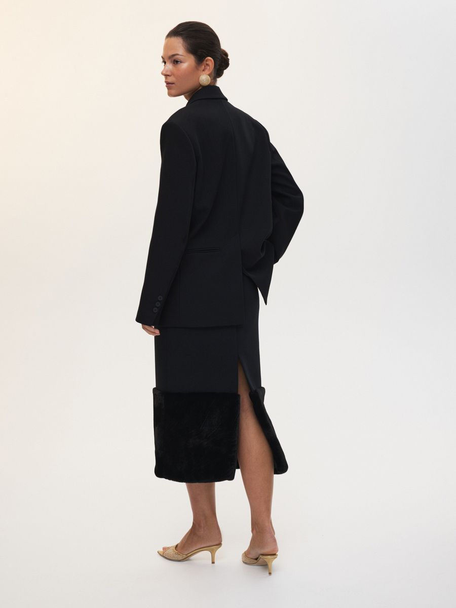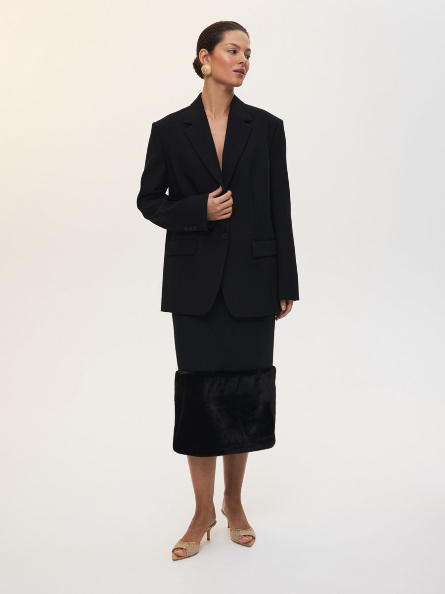 Роскошь классического объемного жакета Blacktie — для самого яркого сезона в году. Однобортная модель с английским воротником и четкой линией плеч создана, чтобы стать основой ваших особенных выходов: блистательных, изысканных или сдержанных, но всегда с уверенным характером. Благодаря качественной костюмной ткани в глубоком черном цвете изделие будет беспроигрышным выбором для модных экспериментов не только в новогоднем сезоне, но и на долгие годы после. Носим жакет соло, акцентируя зону декольте, и добавляем эффектную юбку-миди Empress в стиле винтажного шика. Точечно завершаем образ аксессуарами, ведь самое ослепительное сияние — внутри.