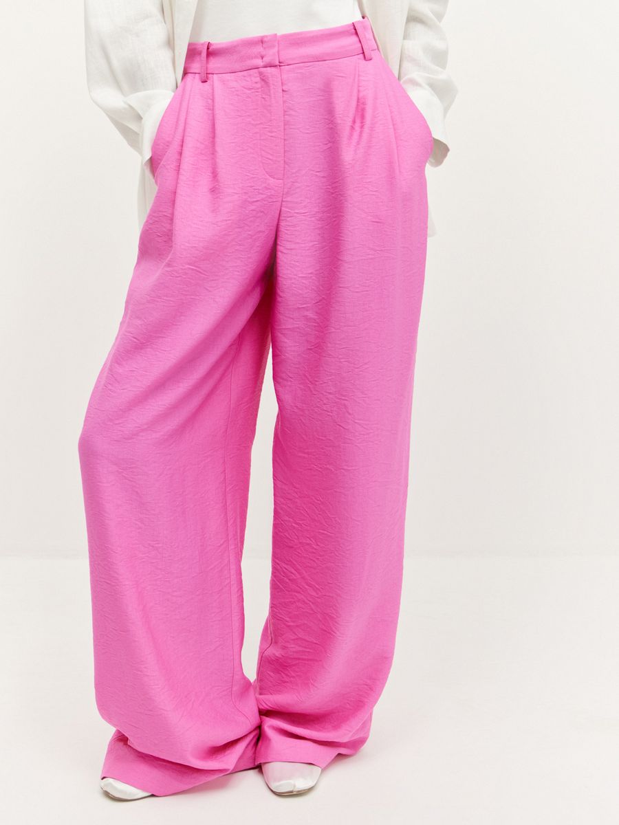 Струящиеся брюки light crush из фактурной вискозы созданы, чтобы наслаждаться теплыми днями на веранде любимой кофейни с бокалом освежающего лимонада или в спонтанном путешествии где-нибудь на побережье.