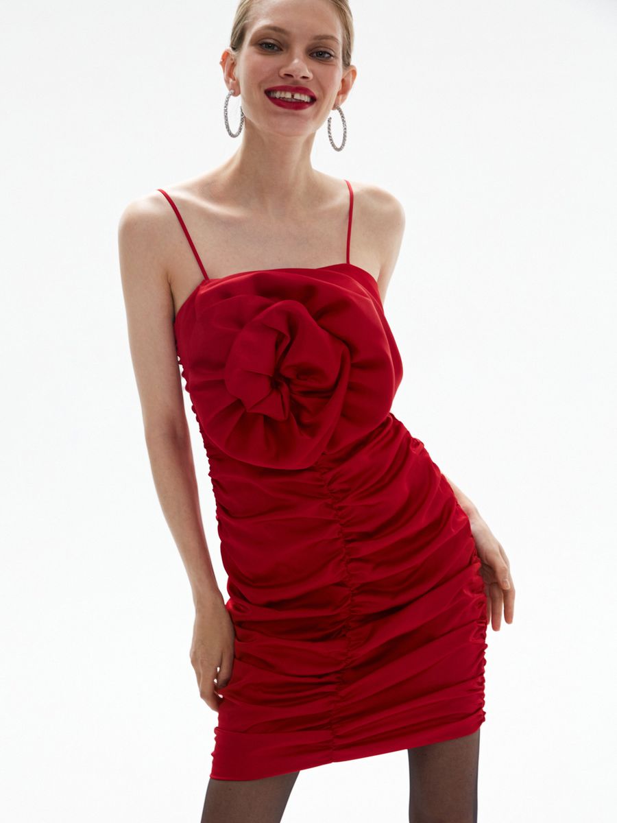 Ключевая модель в праздничной коллекции SELFMADE — платье-мини со скульптурной гипертрофированной розой. Настоящее воплощение flower power. Чувствуем себя в нем одновременно сексуальной и драматичной, словно вы дива театральной сцены, притягивающая внимание своей утонченной красотой и силой выражения.