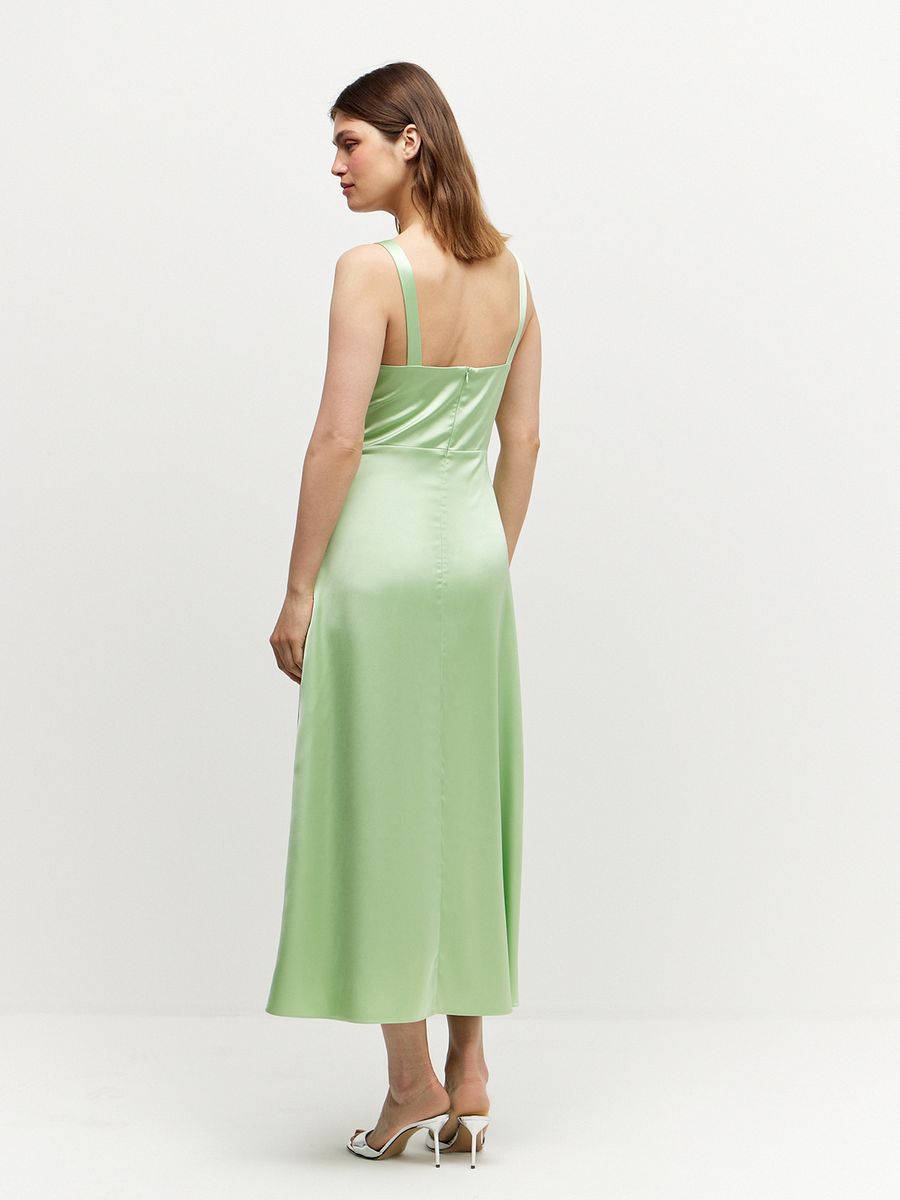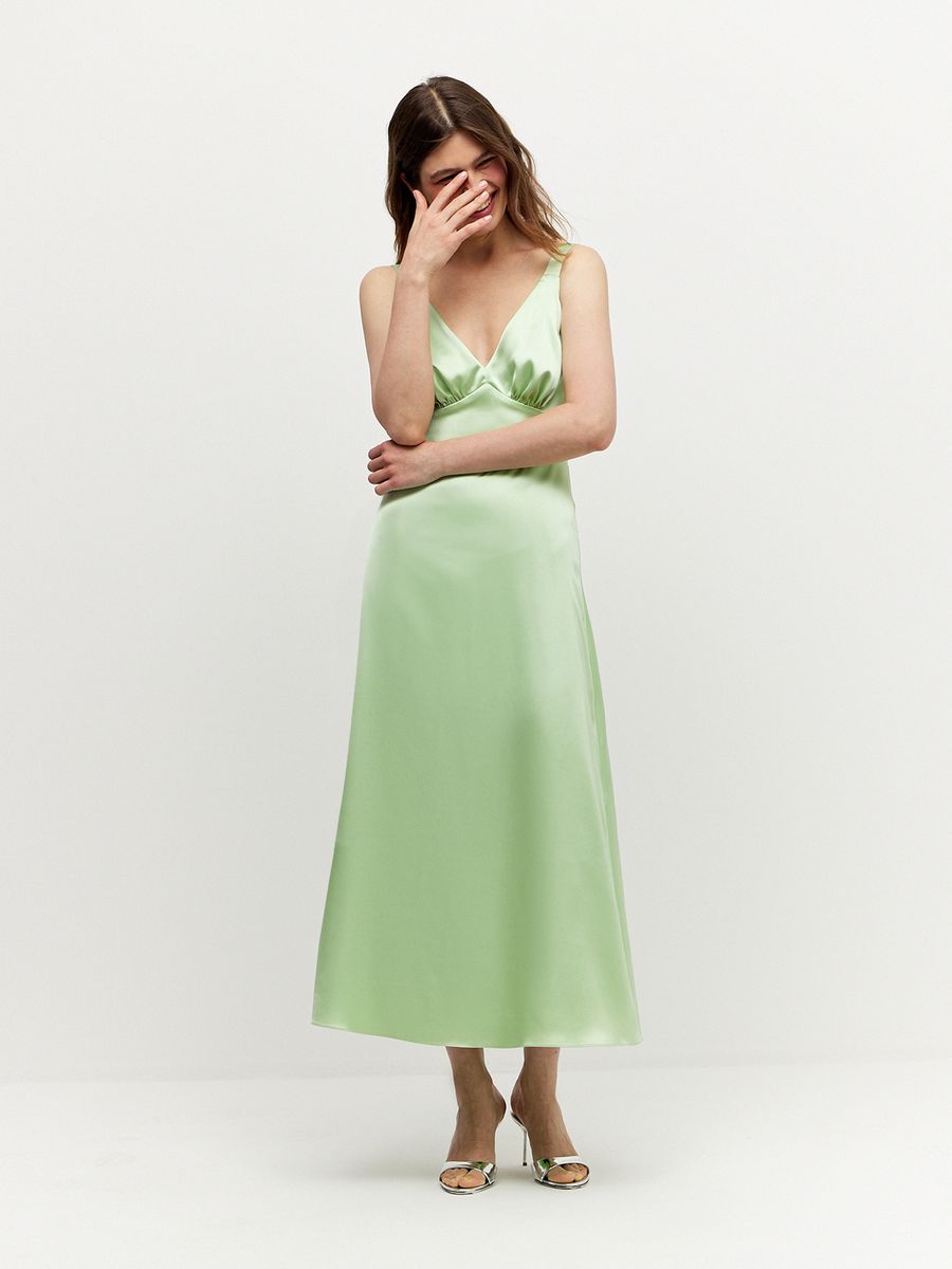 Струящееся и изящное платье длины midaxi, в котором мы отправляемся с подругами на бранч с бокалом игристого или гуляем по летнему городу и наслаждаемся теплыми вечерами. Элегантный приталенный силуэт, открытая линия плеч, кокетка, подчеркивающая линию талии, — настоящее комбо женственности и роскоши. Стилизуем платье с утонченными лодочками на небольшом каблуке или яркими балетками, дополняем образ небольшой игривой сумкой и чувствуем себя героиней светской хроники.