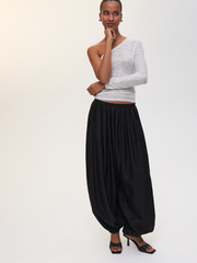 Лонгслив на одно плечо Magical White — тонкое сплетение нежного силуэта и волшебного сияния, приближающего наступление сказки. Облегающая модель станет идеальным украшением любого праздничного выхода благодаря изысканному асимметричному крою и белоснежной сетчатой ткани с россыпью пайеток, напоминающей морозные узоры на стекле. Сочетаем с брюками-аладдинами Moonlight Mirage для эффектного контраста форм и фактур.