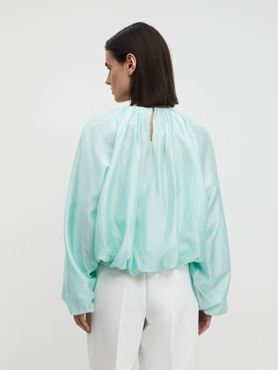 Невесомая блуза mint sorbet — словно глоток прохлады в разгар тепла. Объемные рукава и мягкие сборки придают легкости, а полупрозрачная ткань добавляет изделию деликатности. Нежный мятный оттенок словно мороженое в жаркий день идеально вписывается в городской ландшафт цветущей природы. Сочетайте с шортами или брюками с высокой посадкой и отправляйтесь гулять по городу, утопающему в зелени. Идеальный выбор для тех моментов, когда хочется чувствовать себя легко и непринужденно.