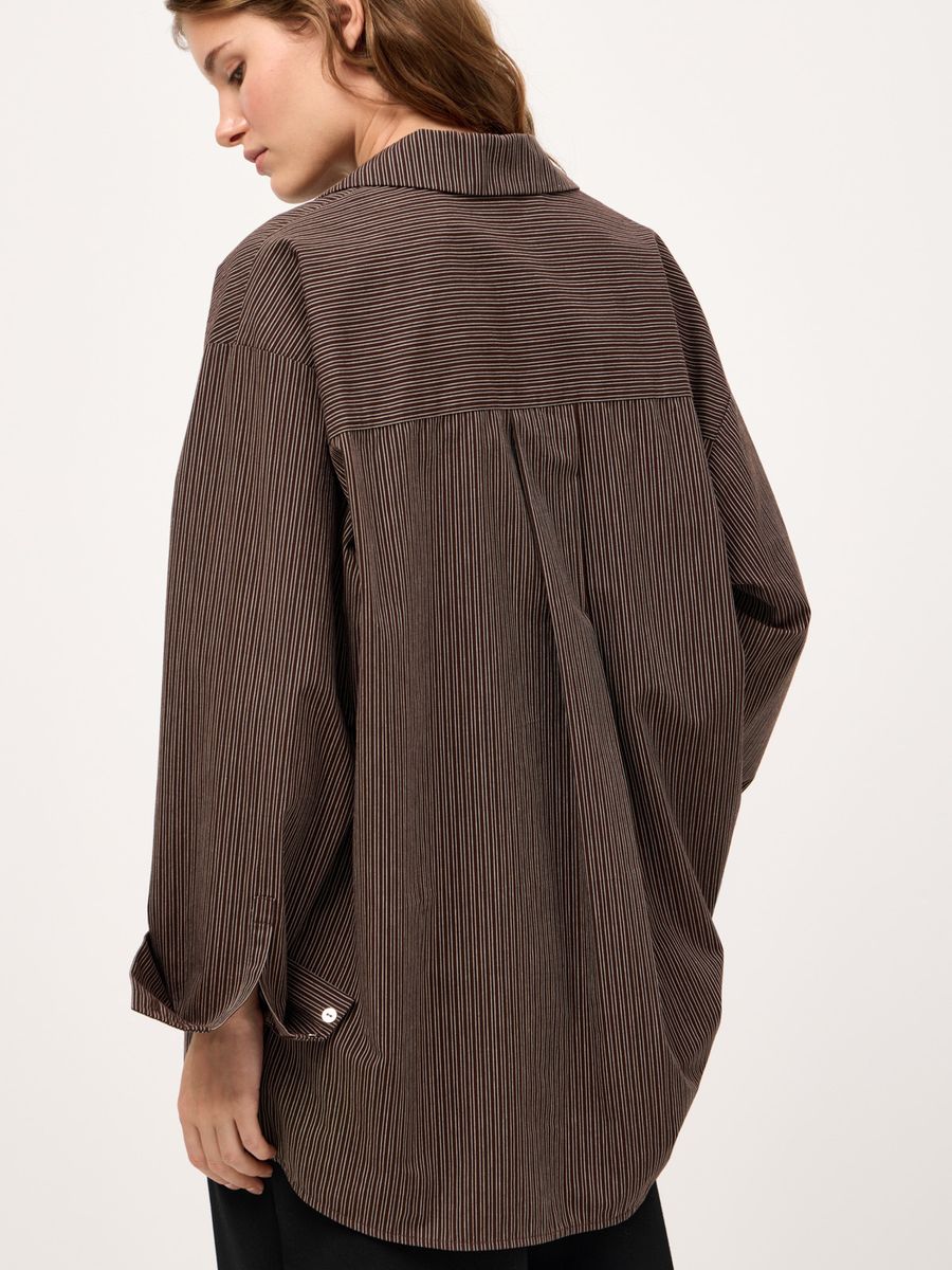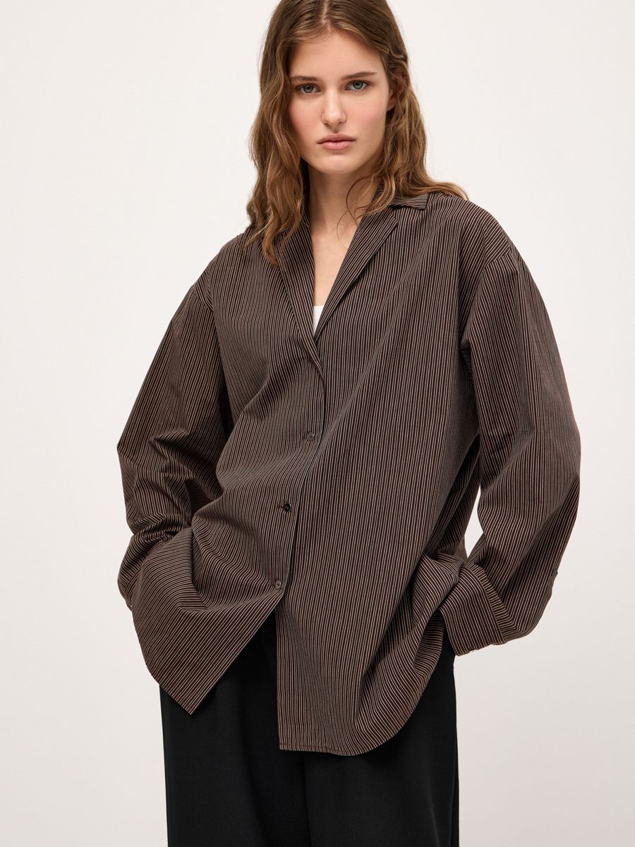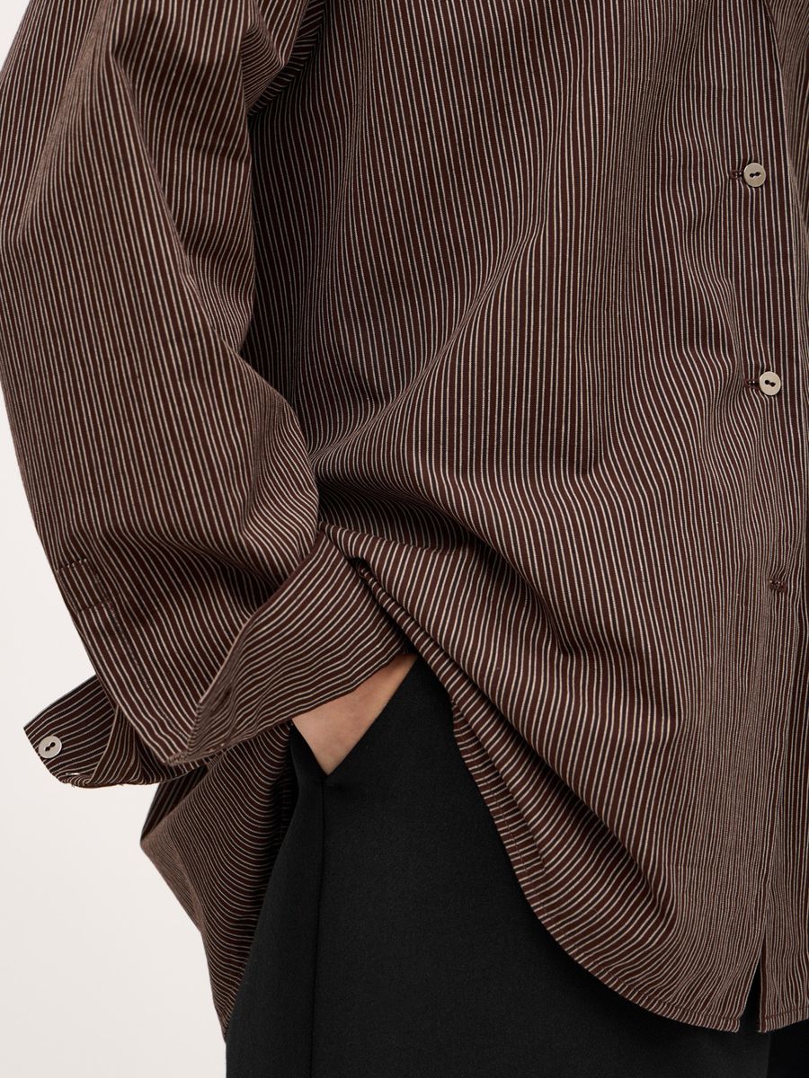Sunday Mood — рубашка, которая создана для того, чтобы наслаждаться комфортом и расслабленной элегантностью, как в неспешное воскресное утро. Ее непринужденный крой со спущенной линией плеч и широкими манжетами подчеркнет вашу легкость и естественность. Выполненная из 100% хлопка в тонкую изящную полоску, она станет универсальным решением для многослойных сочетаний, идеально комбинируясь с брюками-palazzo или изящными юбками. Эта рубашка — воплощение настроения дня, когда вы решаете, как будет выглядеть ваш план на ближайшее время.