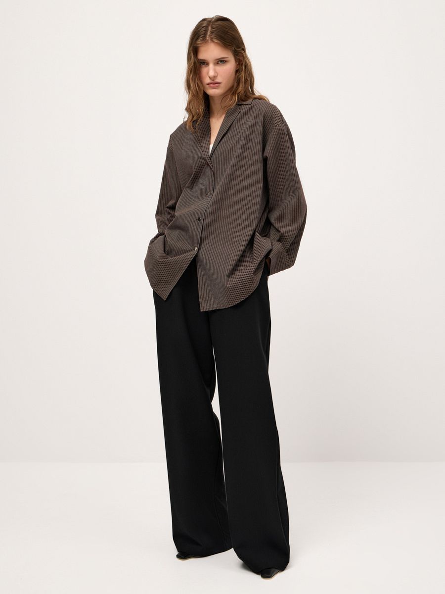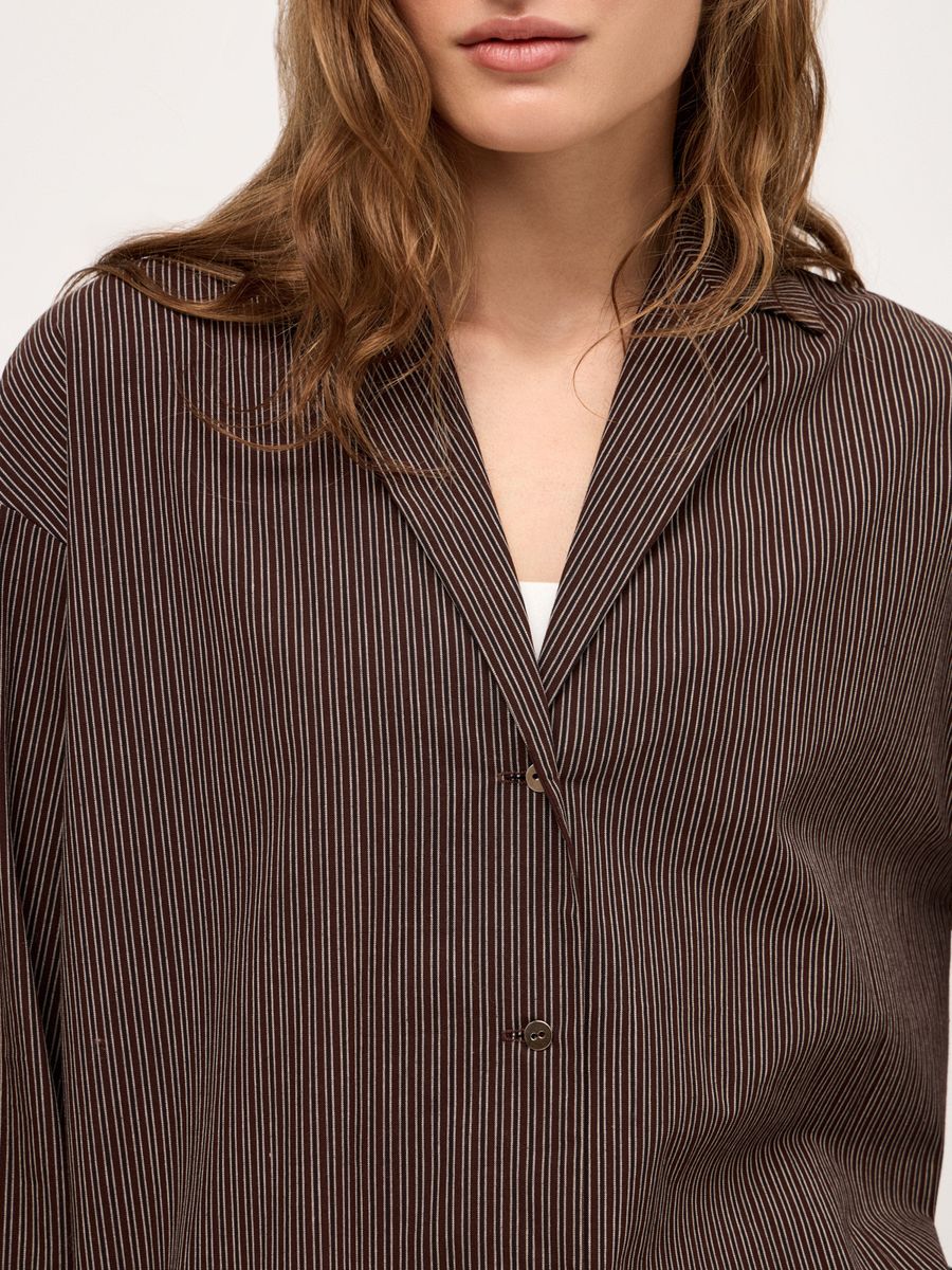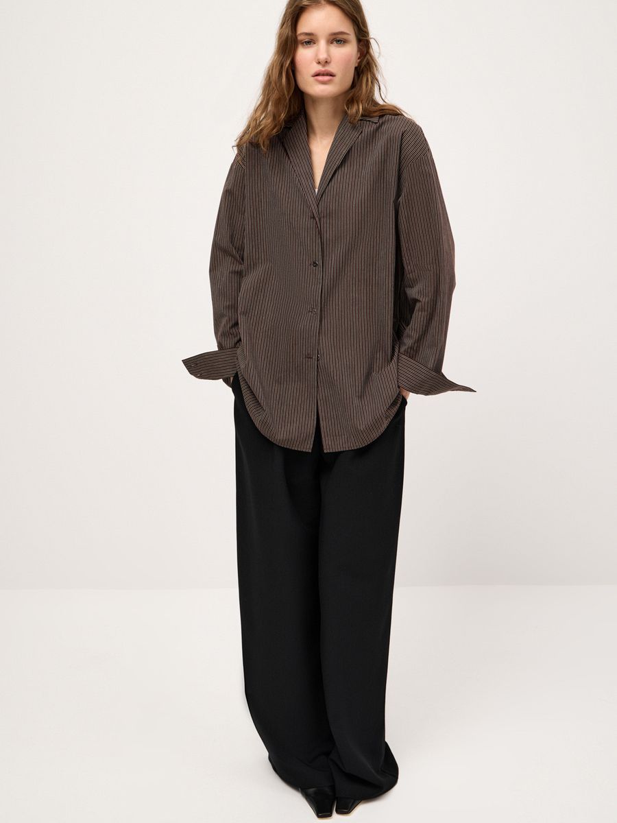 Sunday Mood — рубашка, которая создана для того, чтобы наслаждаться комфортом и расслабленной элегантностью, как в неспешное воскресное утро. Ее непринужденный крой со спущенной линией плеч и широкими манжетами подчеркнет вашу легкость и естественность. Выполненная из 100% хлопка в тонкую изящную полоску, она станет универсальным решением для многослойных сочетаний, идеально комбинируясь с брюками-palazzo или изящными юбками. Эта рубашка — воплощение настроения дня, когда вы решаете, как будет выглядеть ваш план на ближайшее время.