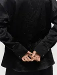 Носите эту блузу в сочетании с брюками из того же материала, чтобы создать сет, вдохновленный роскошной пижамой гедониста. Ощущение комфорта и изысканности сливаются вместе, чтобы подарить вам максимальное удовольствие и приятные моменты в любое время дня или ночи.