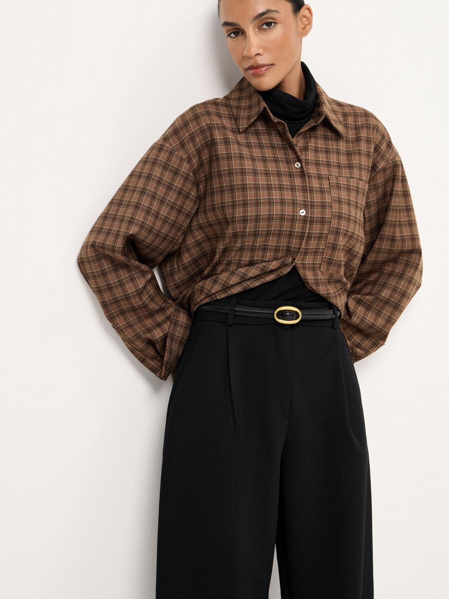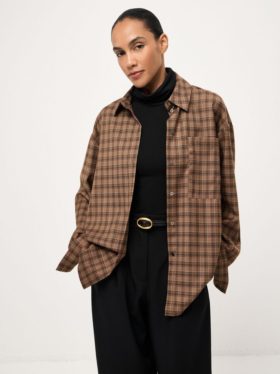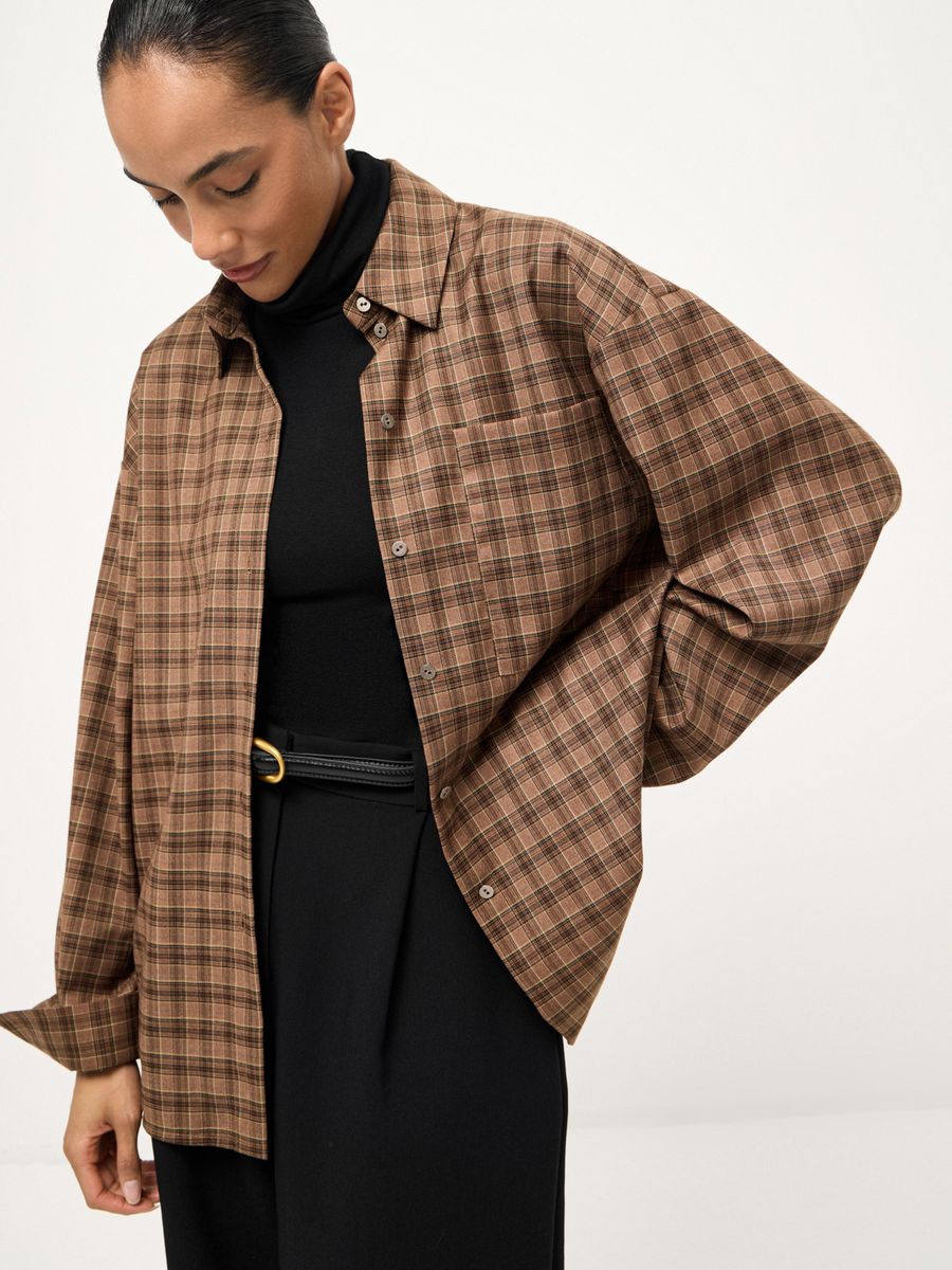 Один из тех айтемов, без которых невозможно представить осенний сезон — уютная рубашка в клетку Browny Tartan. Модель свободного силуэта с лаконичными металлическими пуговицами создана из мягкой структурной ткани. Многогранное изделие безупречно выглядит соло, но раскрывается в полной мере через многослойные стилизации: с облегающей футболкой Base, топом на тонких бретелях или деликатной водолазкой с шерстью. Для непринужденных casual аутфитов выбираем классические джинсы straight или создаем выразительное фактурное сочетание с брюками или юбкой из вельвета.