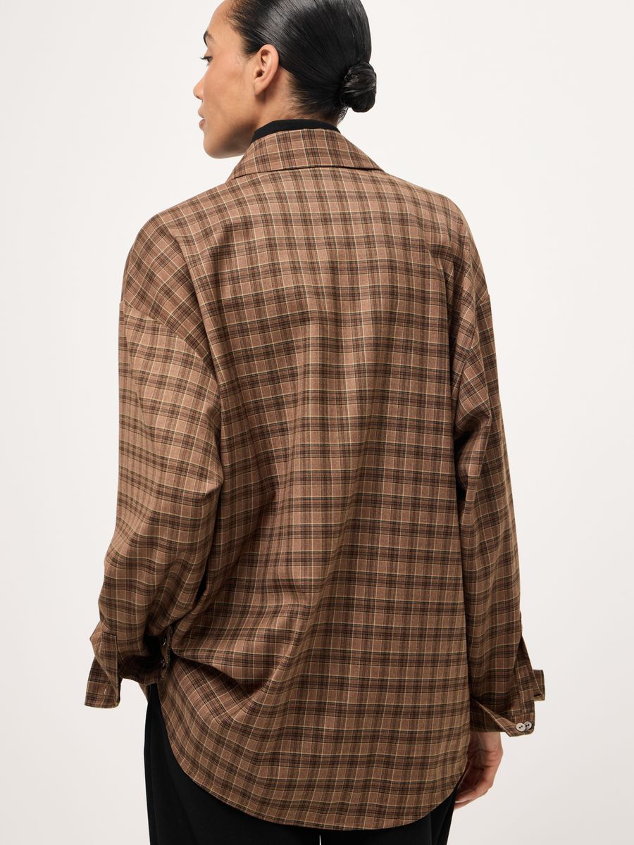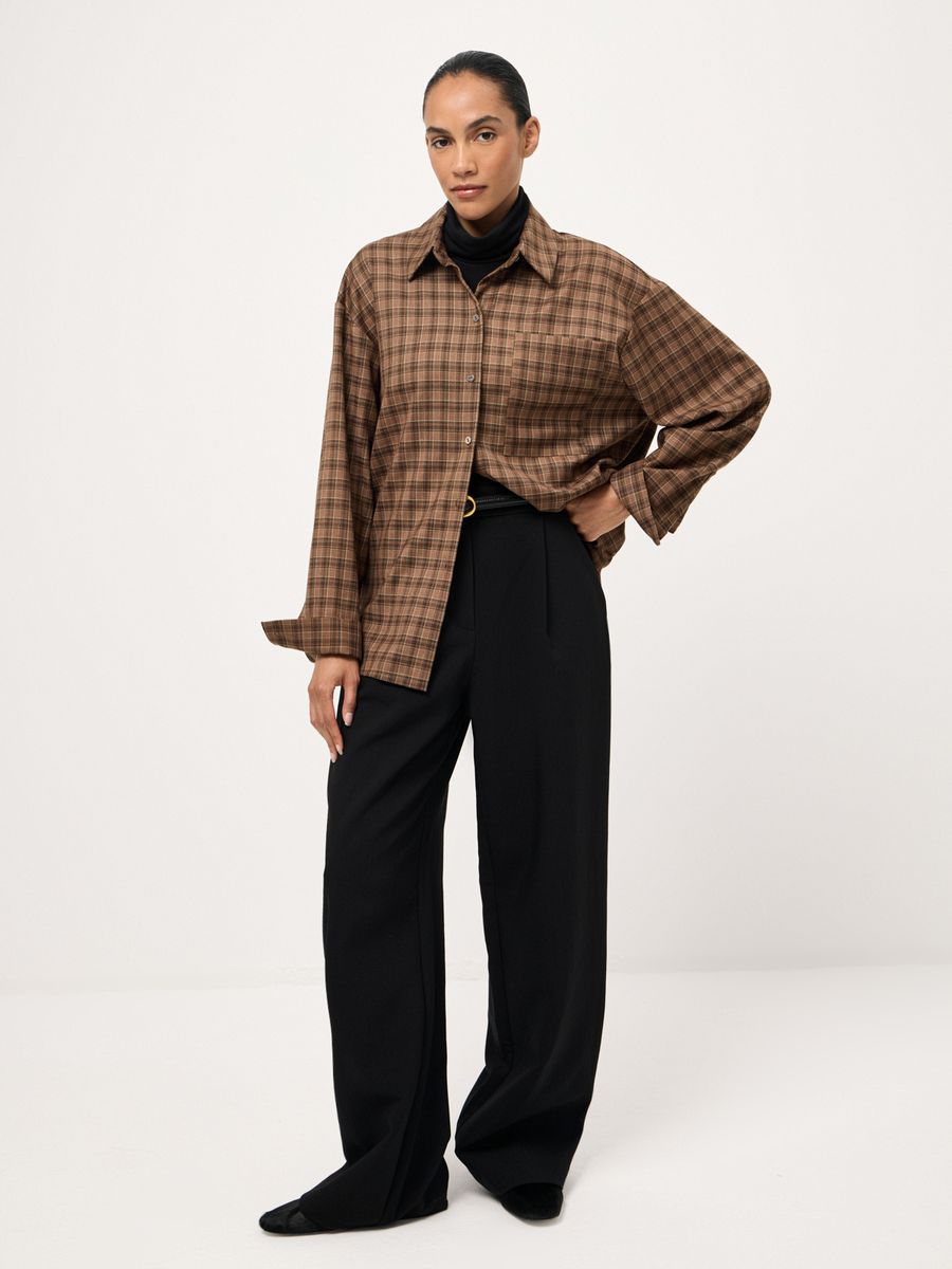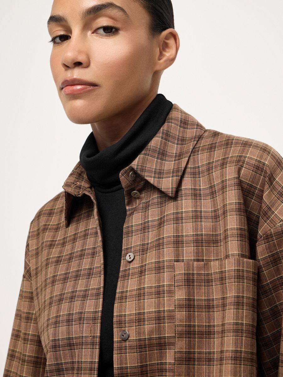 Один из тех айтемов, без которых невозможно представить осенний сезон — уютная рубашка в клетку Browny Tartan. Модель свободного силуэта с лаконичными металлическими пуговицами создана из мягкой структурной ткани. Многогранное изделие безупречно выглядит соло, но раскрывается в полной мере через многослойные стилизации: с облегающей футболкой Base, топом на тонких бретелях или деликатной водолазкой с шерстью. Для непринужденных casual аутфитов выбираем классические джинсы straight или создаем выразительное фактурное сочетание с брюками или юбкой из вельвета.