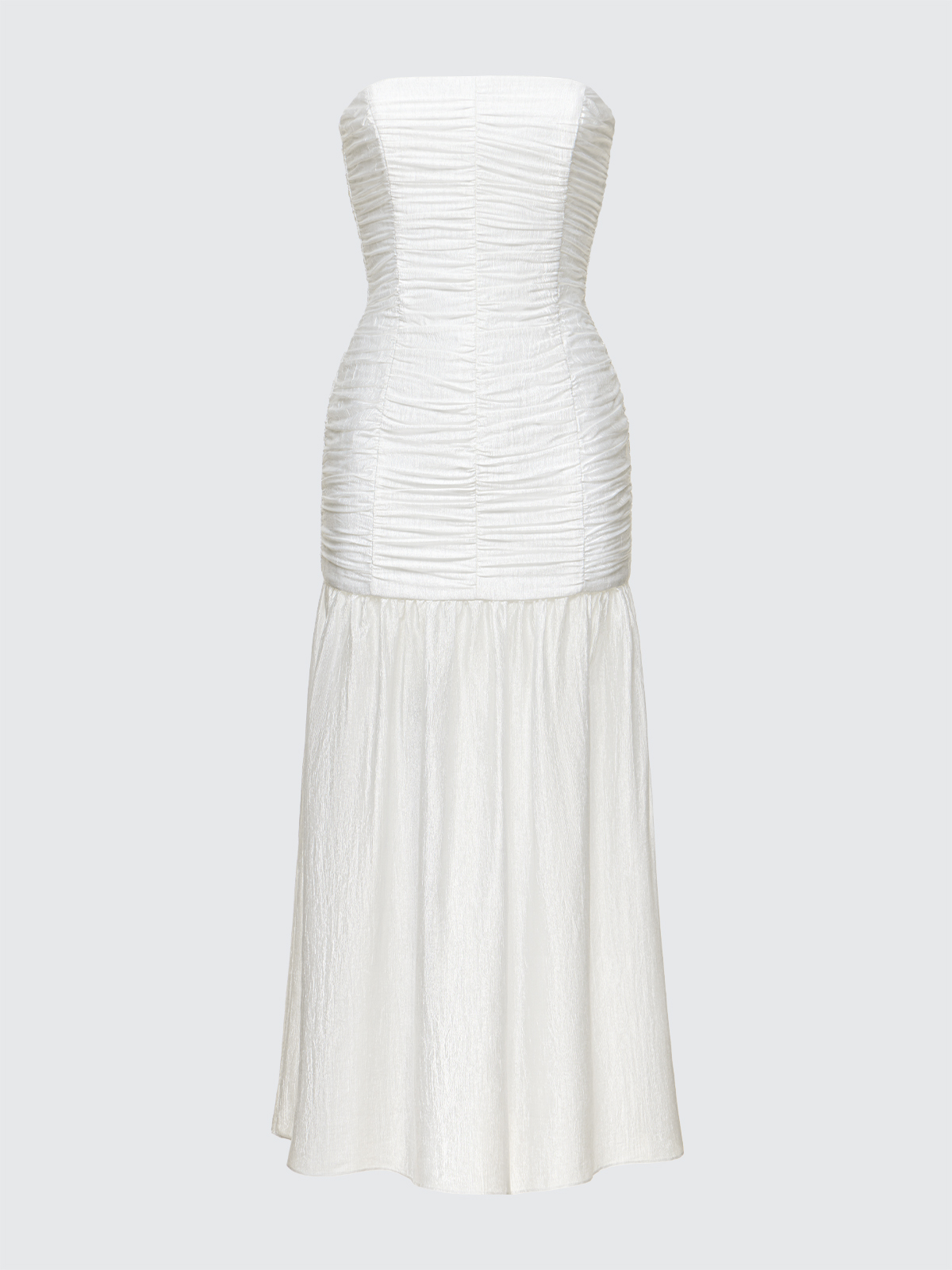 Роскошное платье с драпировкой «Волшебство момента» — словно нежное и трепетное послание о любви. Архитектурный верх с драпировкой и невесомая юбка из жатого шифона — детали, благодаря которым в модели хочется кружиться, восхищая окружающих каждым движением. Дополняем платье изящными лодочками, пышной фатой и отправляемся праздновать самый счастливый день в образе современной принцессы.