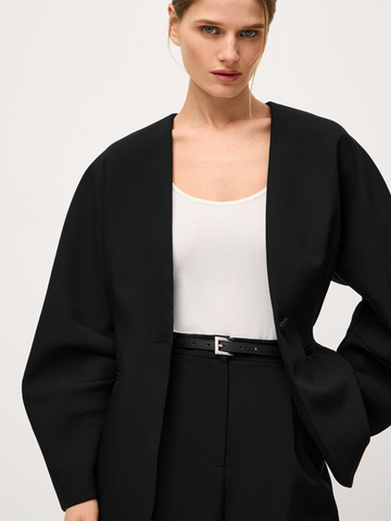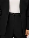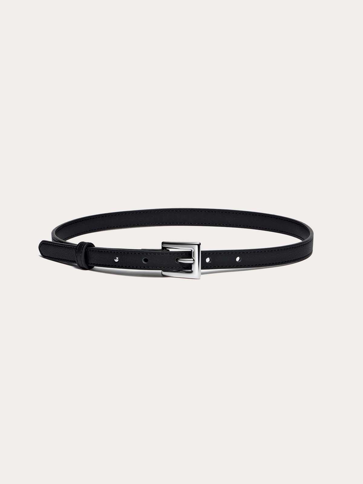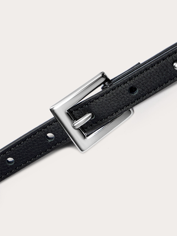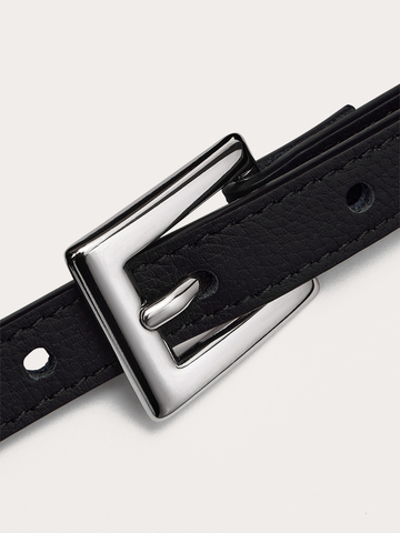 Ремень Sleek в классическом черном цвете — та самая деталь, которая делает образ завершенным и безукоризненным. Модель из зернистой натуральной кожи с аккуратной серебристой пряжкой станет вашим любимым аксессуаром, который идеально сочетается с любыми брюками, джинсами и юбками. Утонченный айтем создан для тех моментов, когда хочется добавить акцент, не перегружая образ.