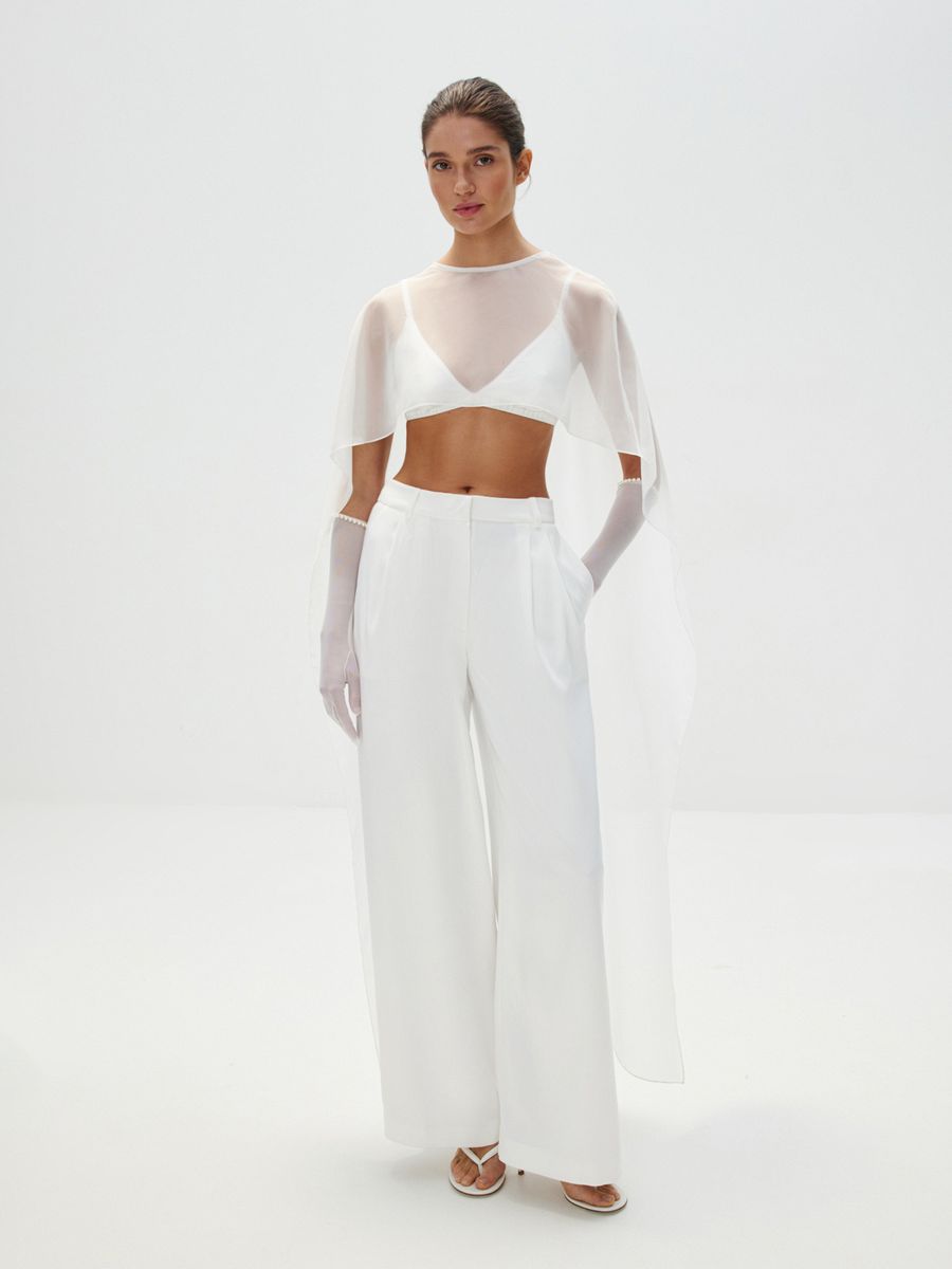 Топ-бра «Деликатность» — изящный элемент вечернего гардероба, способный сделать безупречным любой образ. Модель идеально дополнит стилизации с жакетами, когда хочется оставить глубокий вырез главным акцентом, или кейпами. Благодаря роскошной атласной ткани топ отлично смотрится соло, к примеру, в сочетании со струящейся накидкой «Тот самый миг».