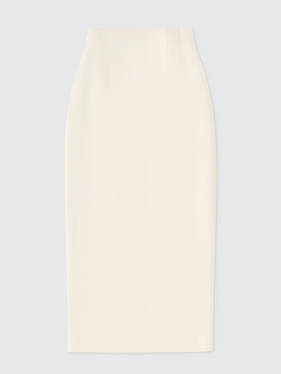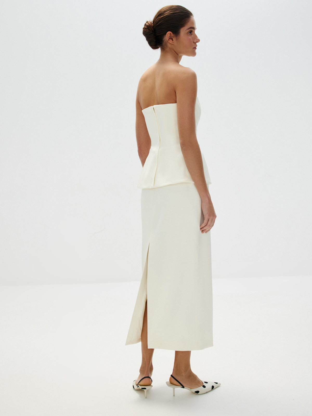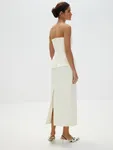 Длина миди. Завышенная талия с вытачками. Застежка на молнию и высокий разрез сзади.