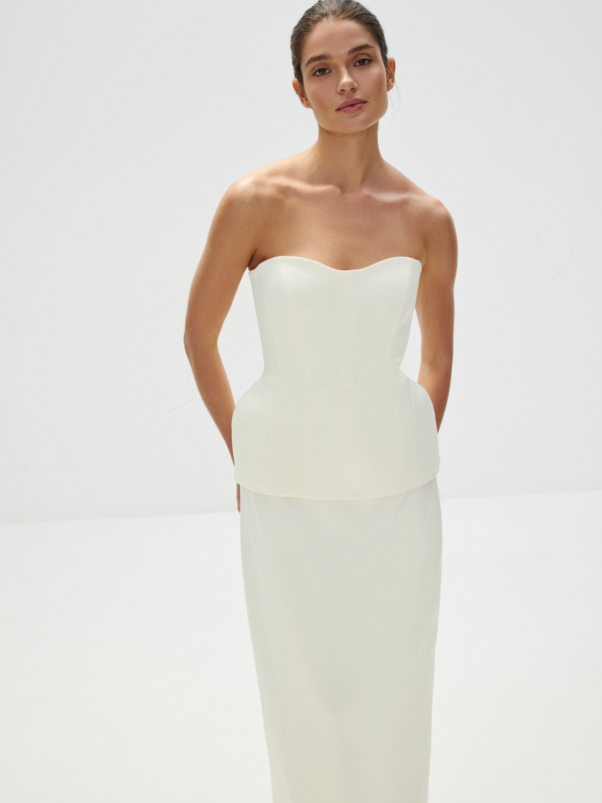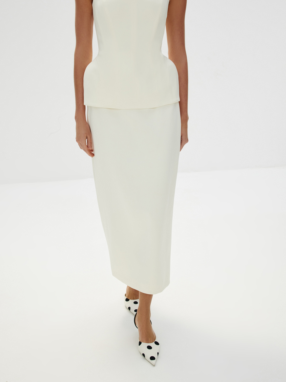 Юбка-миди с деликатным блеском «Дива» — женственная классика в самом изысканном исполнении. Вдохновляемся роскошью вневременного силуэта с акцентной талией и высоким разрезом сзади. Носим в кремовом сете с корсетом, выбирая чувствовать себя уверенно и чарующе красиво, — идеально не только для свадебного образа, но и любых особенных событий летнего сезона.