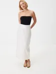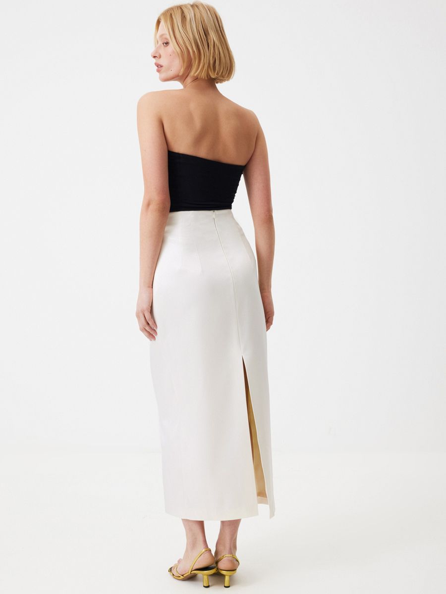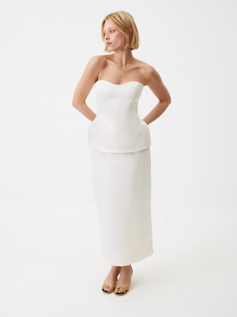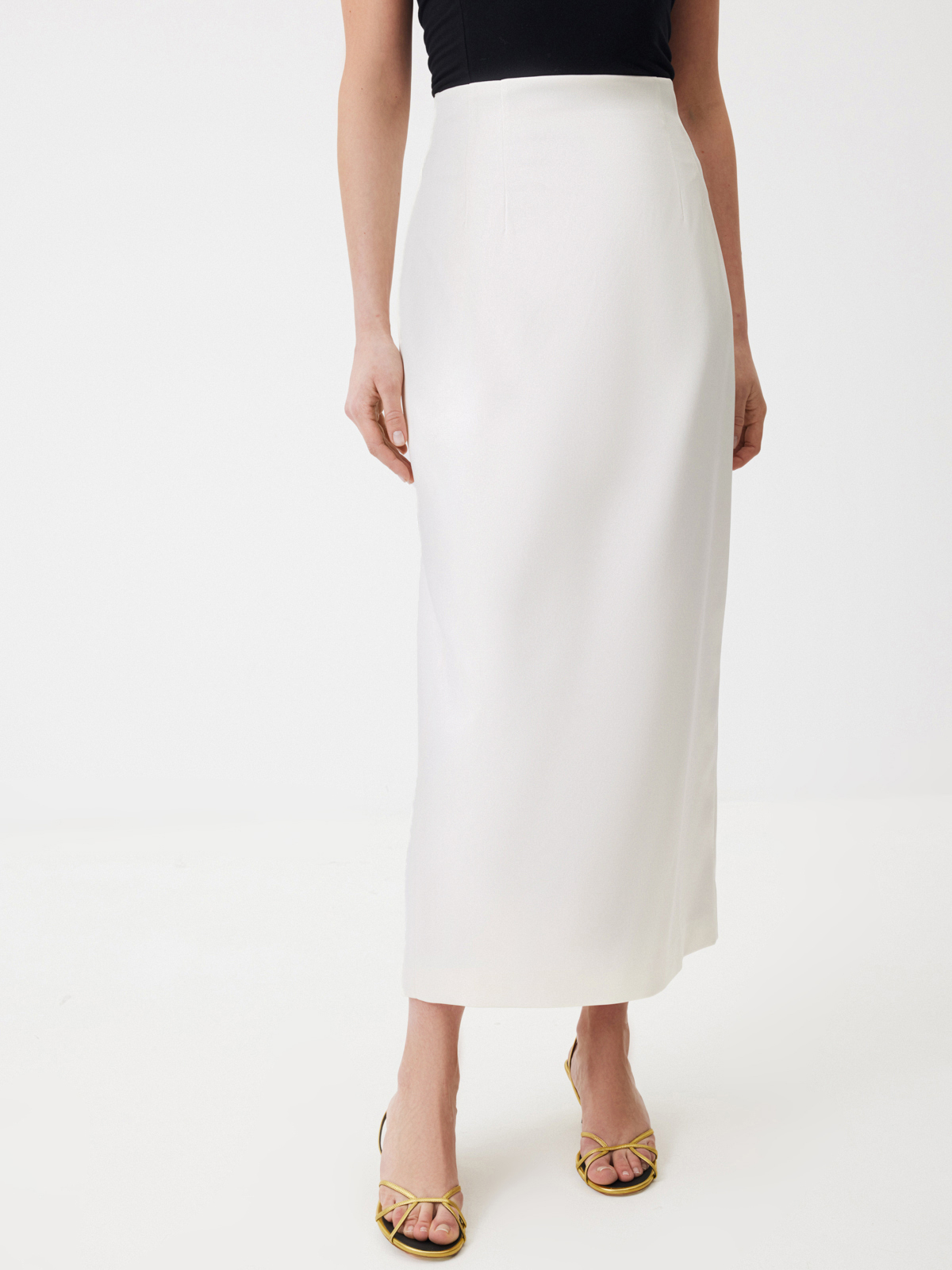 Атласная юбка-миди Royal White — женственная классика в самом нежном исполнении. Вдохновляемся роскошью вневременного силуэта с завышенной талией и высоким разрезом сзади, превращающем каждый образ в элегантный вечерний выход. Носим в восхищающем молочном сете с корсетом, выбирая легкий жемчужный блеск вашим главным спутником.
