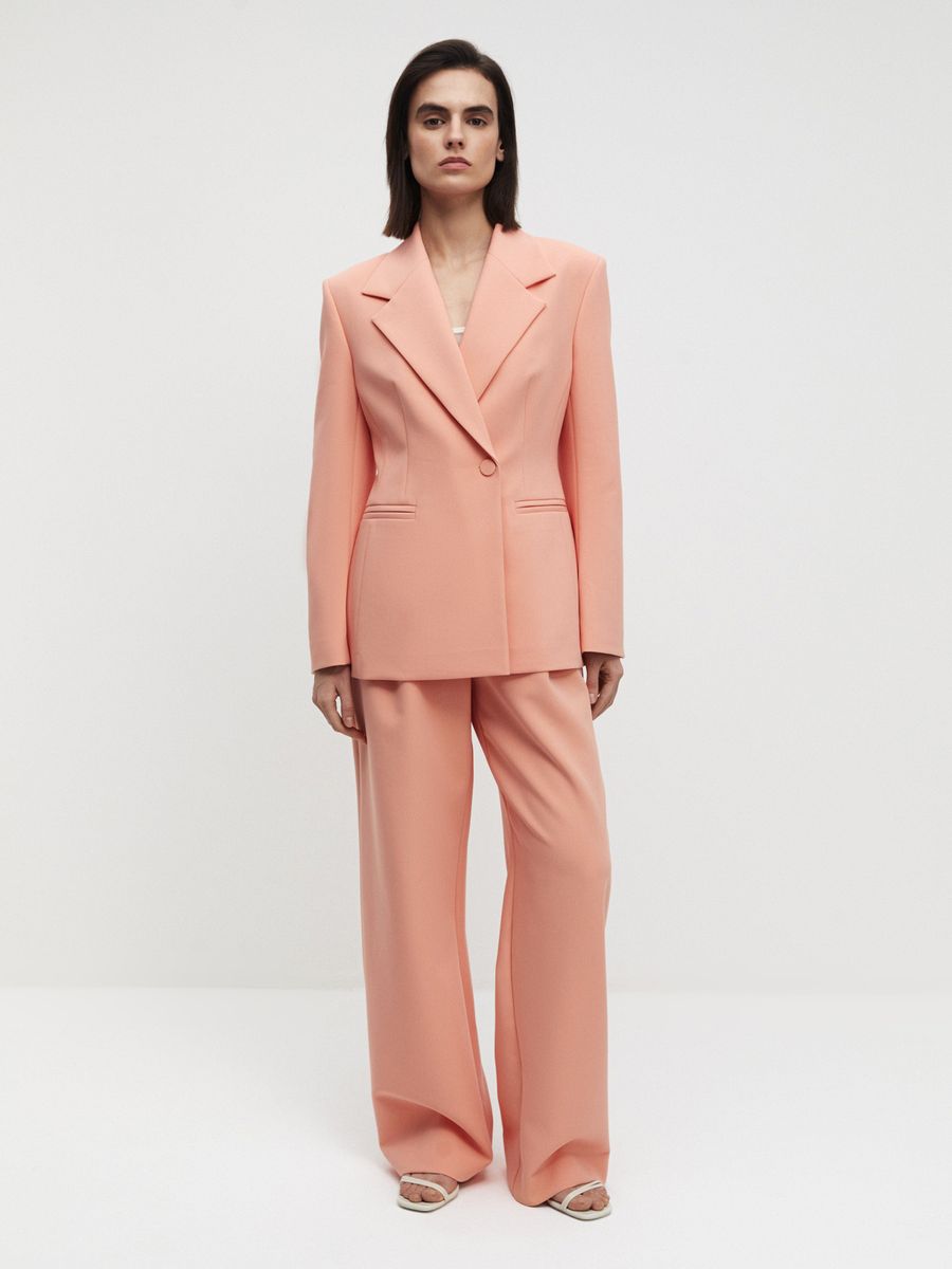 Безукоризненные брюки-palazzo coral blush — идеальный баланс расслабленности и элегантности. Легко струящийся силуэт, чистые линии и безупречная посадка делают их той самой парой, которая всегда в останется в центре внимания. Высокая посадка подчеркивает талию, а расслабленный крой придает образу утонченность без лишней строгости. В дуэте с силуэтным жакетом gentlewoman coral blush создают выразительный весенний сет. А в сочетании с базовым топом или рубашкой легко адаптируются к любому настроению — от сдержанной классики до расслабленной элегантности. Эти брюки — про уверенность, комфорт и выразительность, не требующие компромиссов.