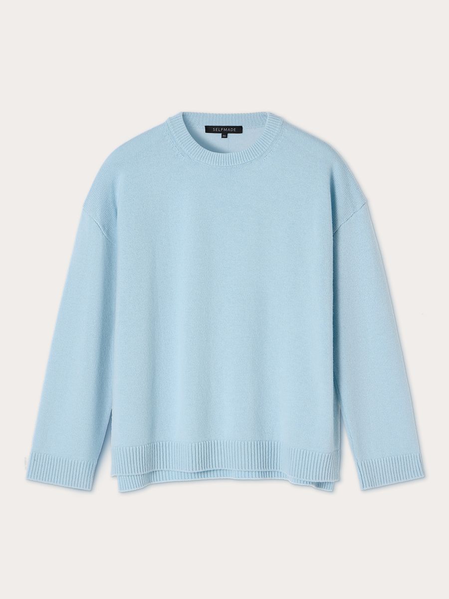 Перфекционизм в каждой детали — базовый джемпер Cashmere Blend. Тот самый айтем, который будет восхищать качеством и вдохновлять на свежие стилизации в холодном сезоне. Роскошь шелка, шерсти мериноса, кашемира и неизменная актуальность лаконичного силуэта становятся символом того, как идеально подобранный джемпер может говорить о любви к себе. Создаем безупречный casual аутфит, сочетая нежно-голубой джемпер с идеальными палаццо Classy Blue в глубоком синем оттенке.