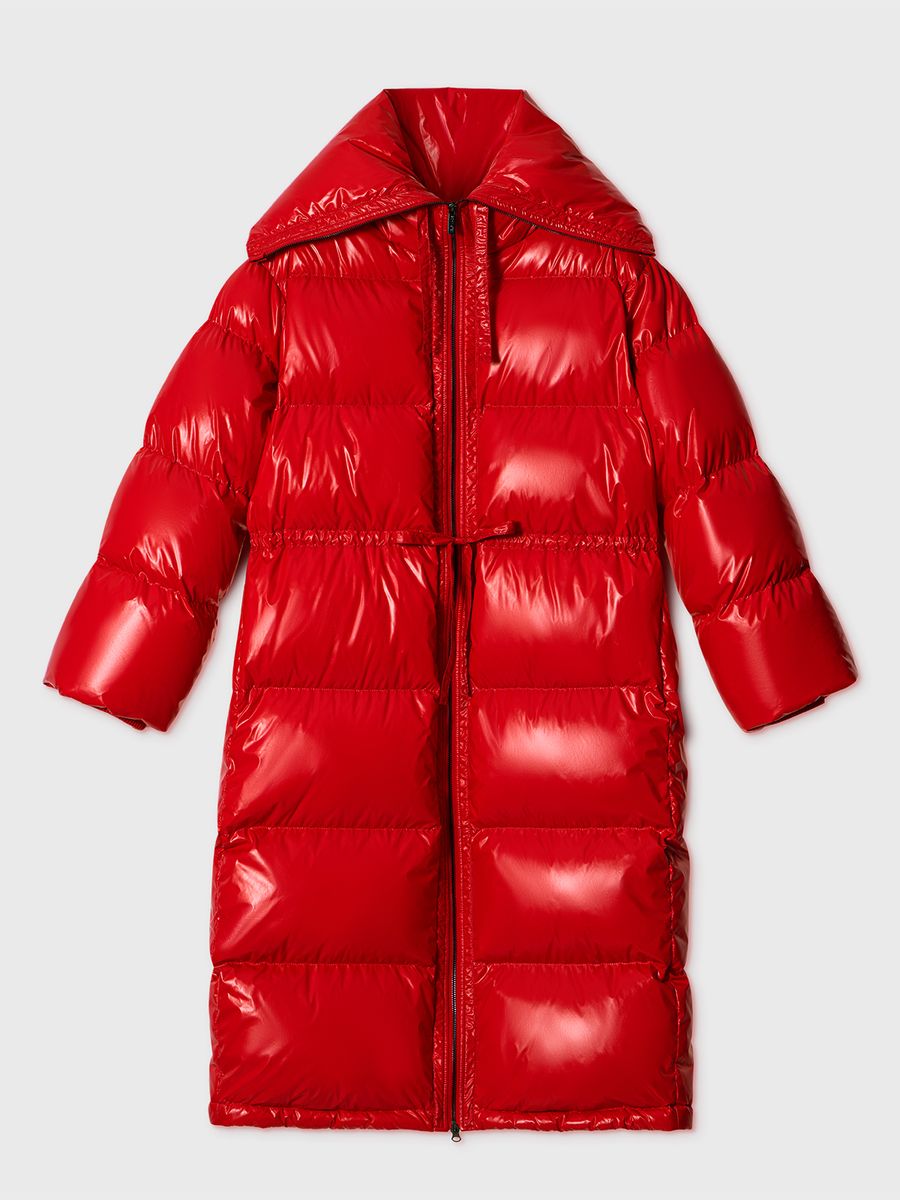 Удлиненный пуховик Maxi Glossy идеален для зимних дней, когда хочется максимального комфорта и уюта, не отказываясь от эффектного образа. Его глянцевая поверхность привлекает внимание, добавляя выразительности любому выходу, а продуманные детали делают его максимально функциональным.