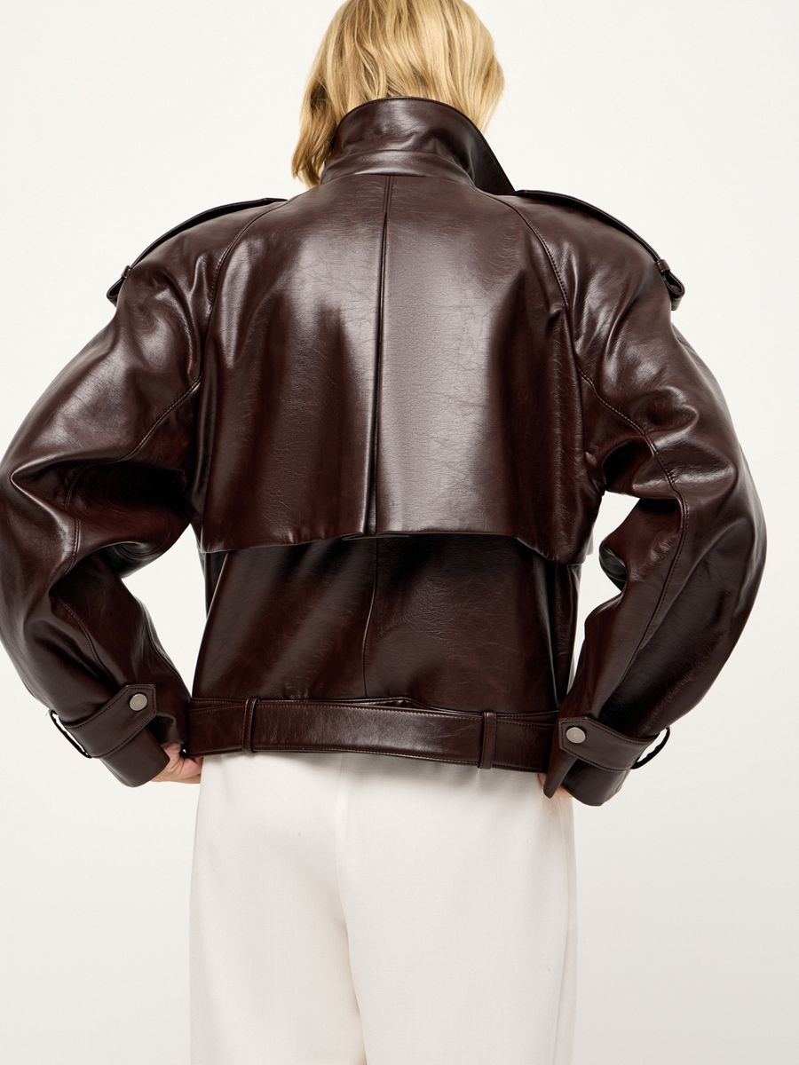 Куртка-косуха The 80s era — дух эпохи, когда стиль был манифестом, а уверенность ощущалась в каждом движении. Глянцевый блеск эко-кожи и глубокий оттенок переносят в годы дерзкой моды и шика, где каждая деталь говорила о свободе и самовыражении.