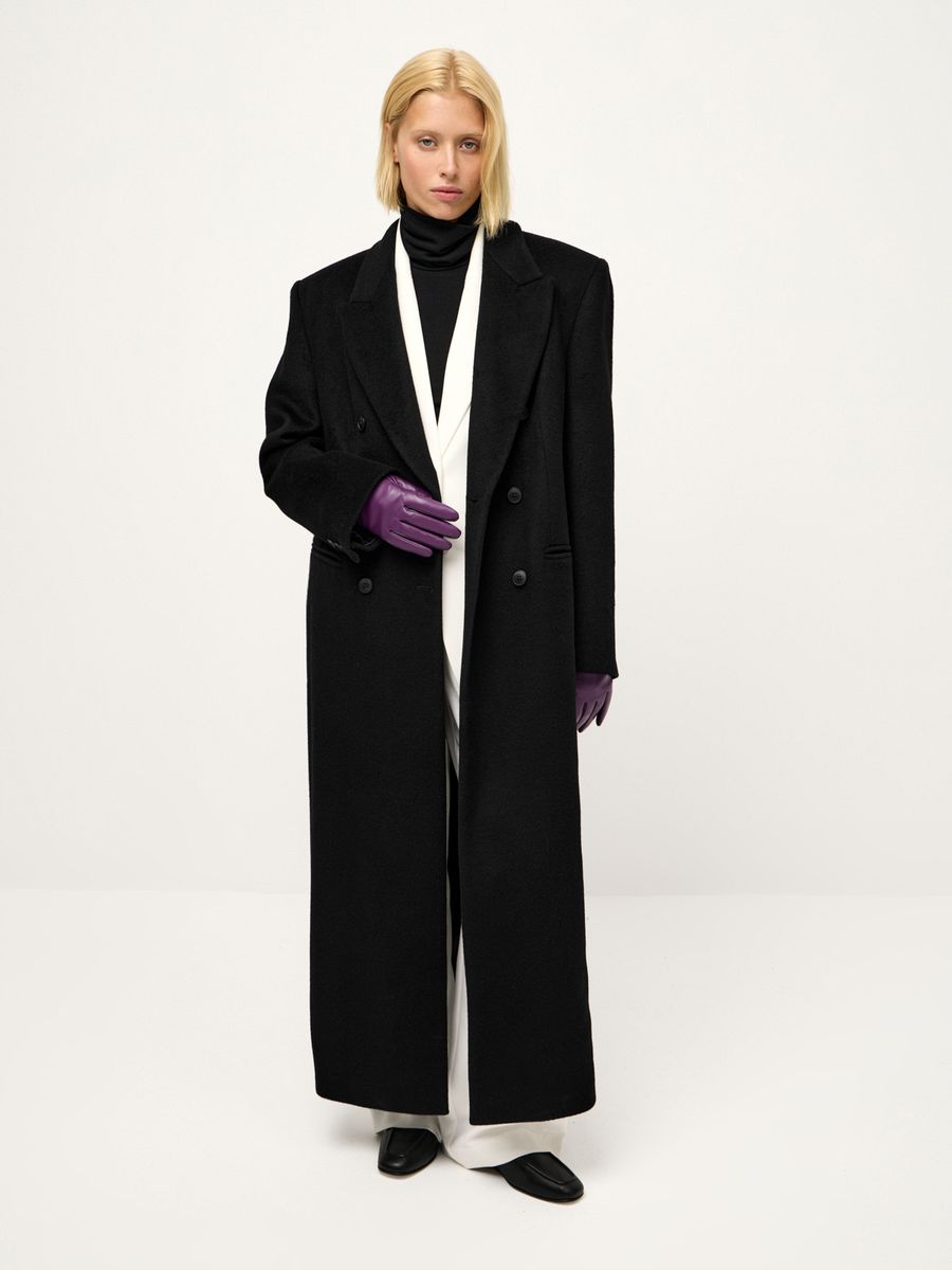 Statement-пальто Dark Black — воплощение абсолютной элегантности и выразительности. Его глубокий черный цвет наполняет образ драматичностью и универсальностью, делая это пальто незаменимым в холодный сезон. Материал с высоким содержанием шерсти окутывает теплом и комфортом, а строгий двубортный крой с четкими линиями плеч и заостренными лацканами подчеркивает графичность и эффектность модели. Длина midaxi добавляет драматизма, превращая пальто в ключевой акцент гардероба, который легко адаптируется к любым ситуациям. Эта модель идеально дополнит как деловой костюм для офисных будней, так и вечерние наряды для особых случаев.