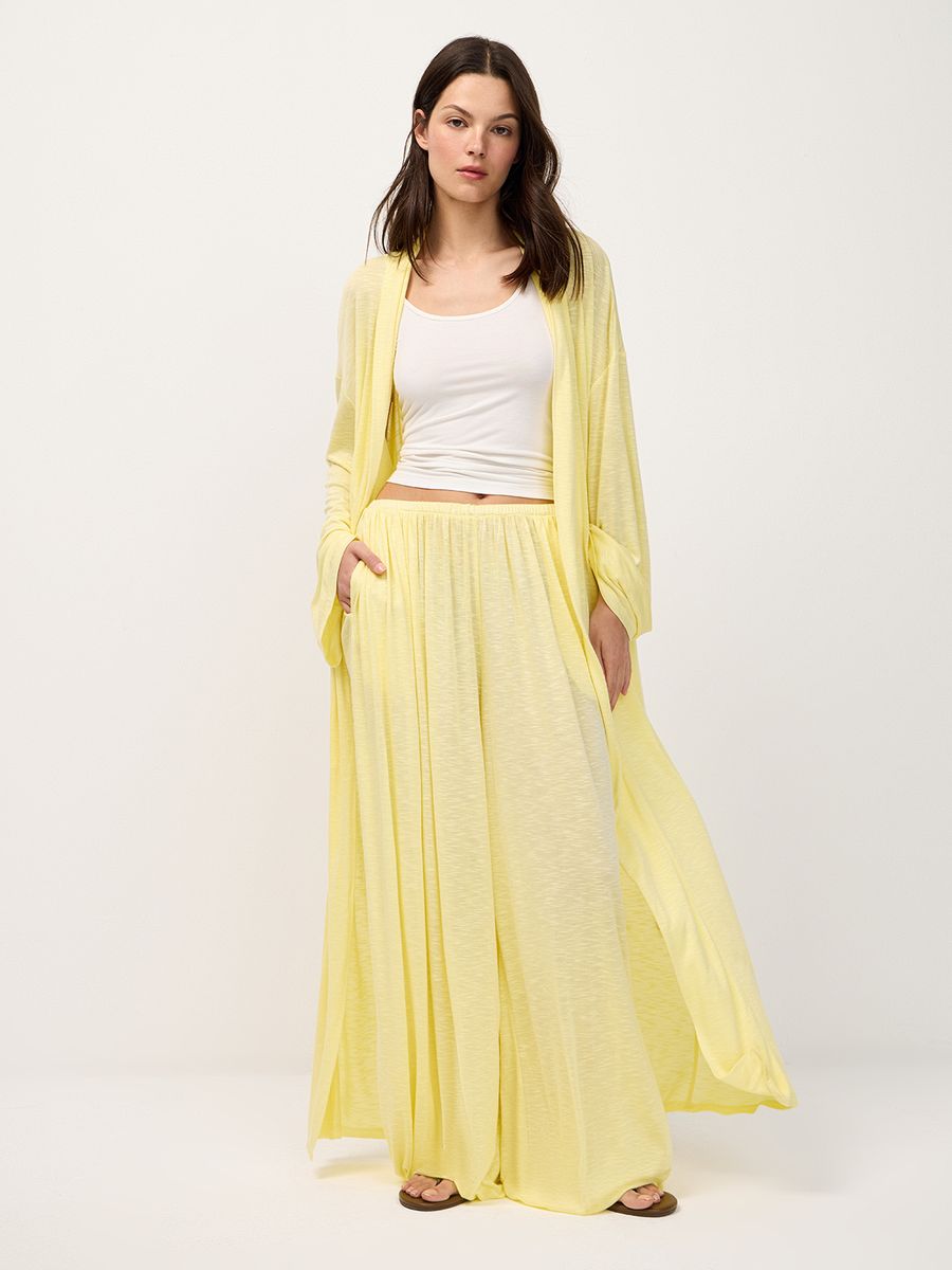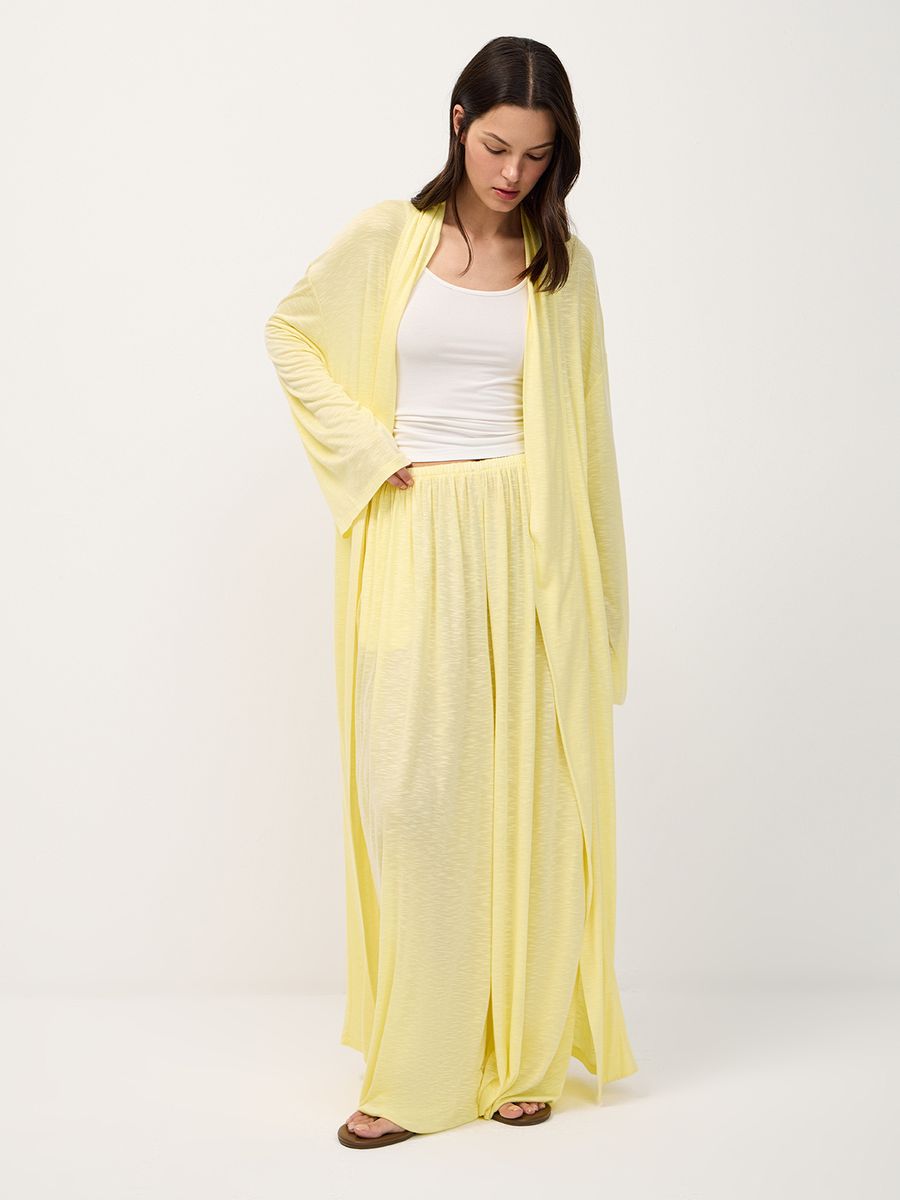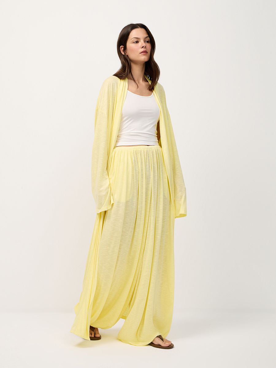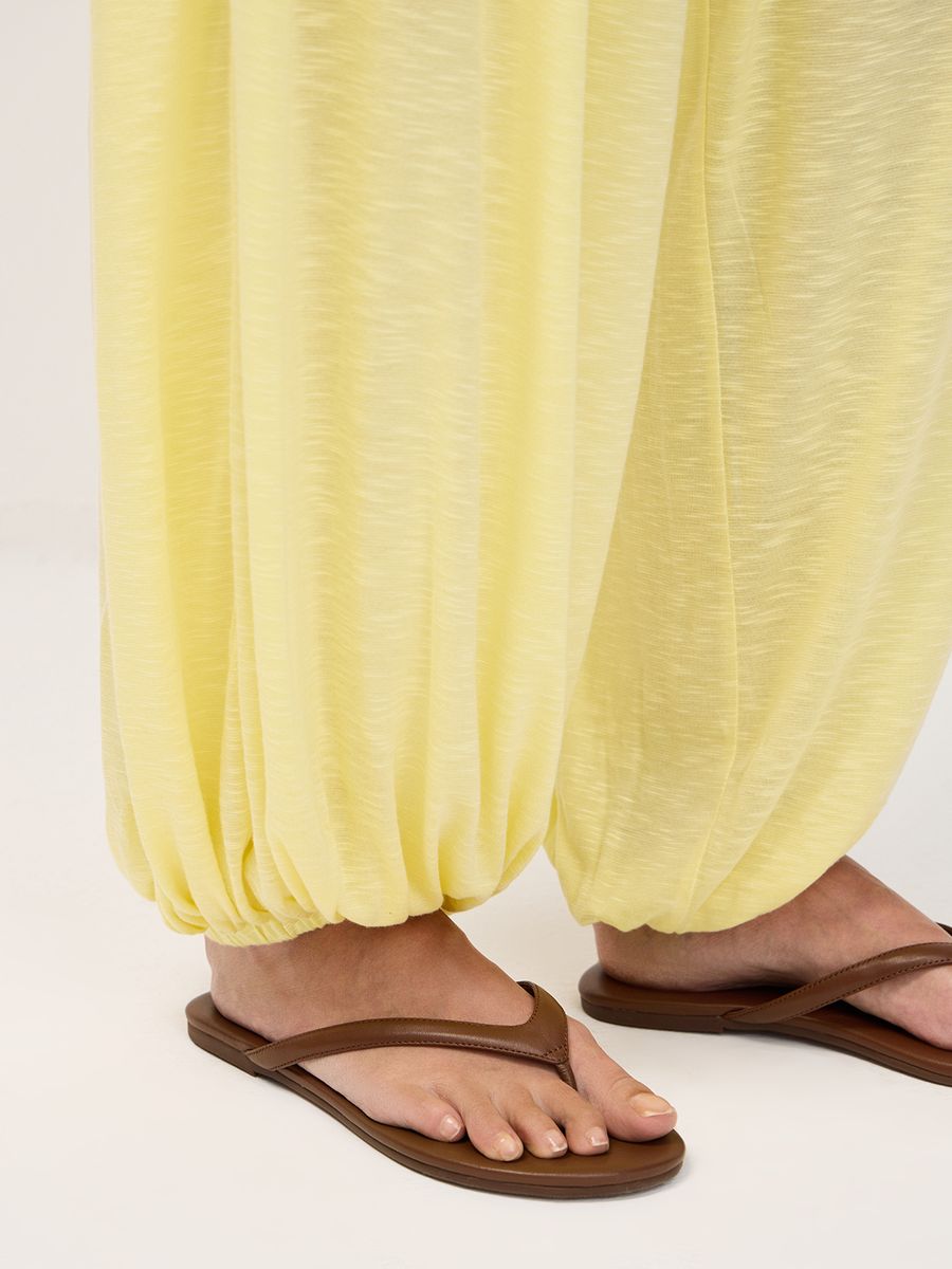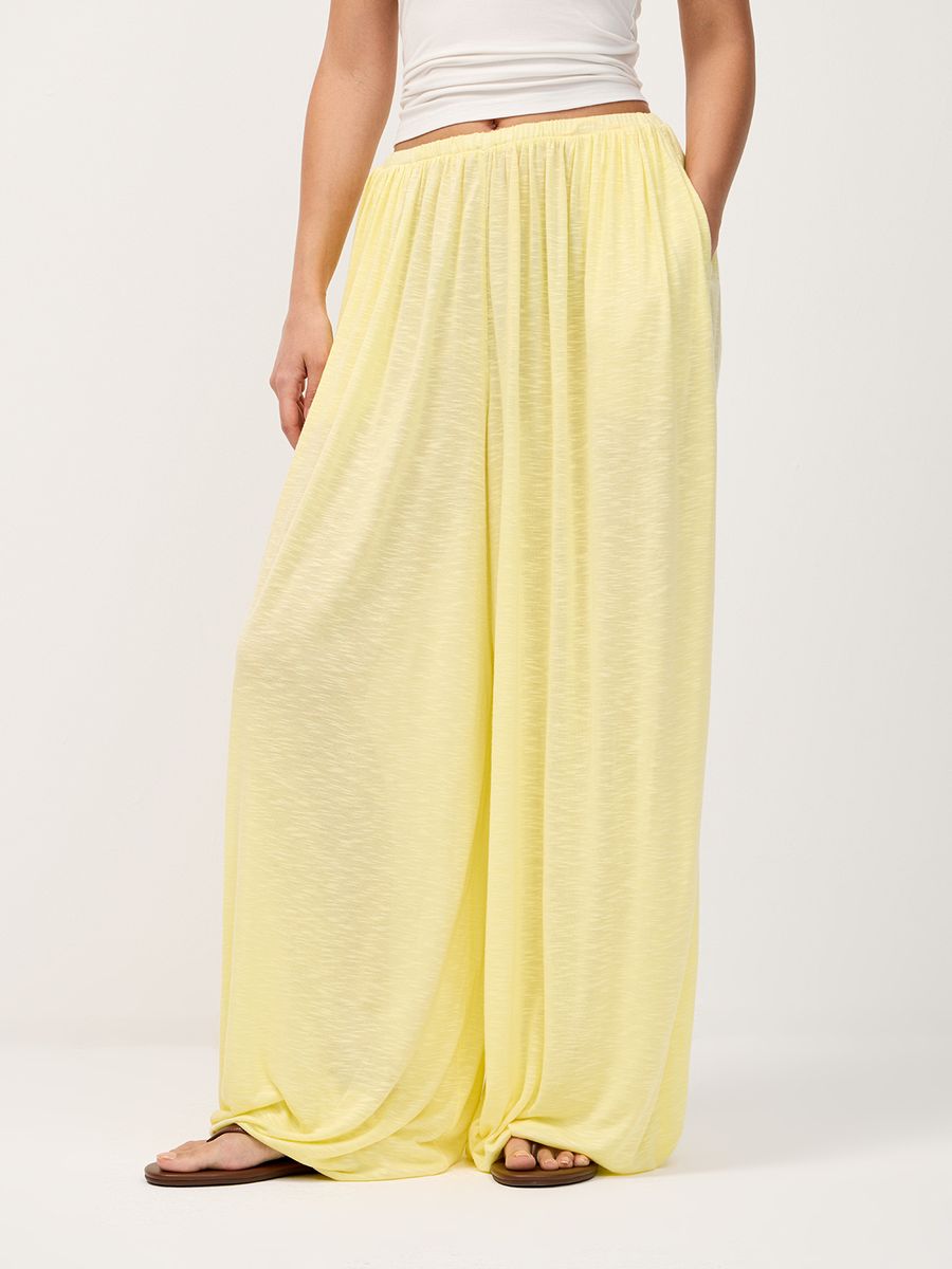 Свободные, почти невесомые — брюки day-off подойдут для тех дней, когда вы не хотите никуда торопиться. Модель выполнена из мягкой, струящейся ткани с легкой текстурой и собрана по низу на резинку. Средняя посадка, расслабленный объем и абсолютный комфорт при движении. Для городской рутины или побега от нее — как вы решите.