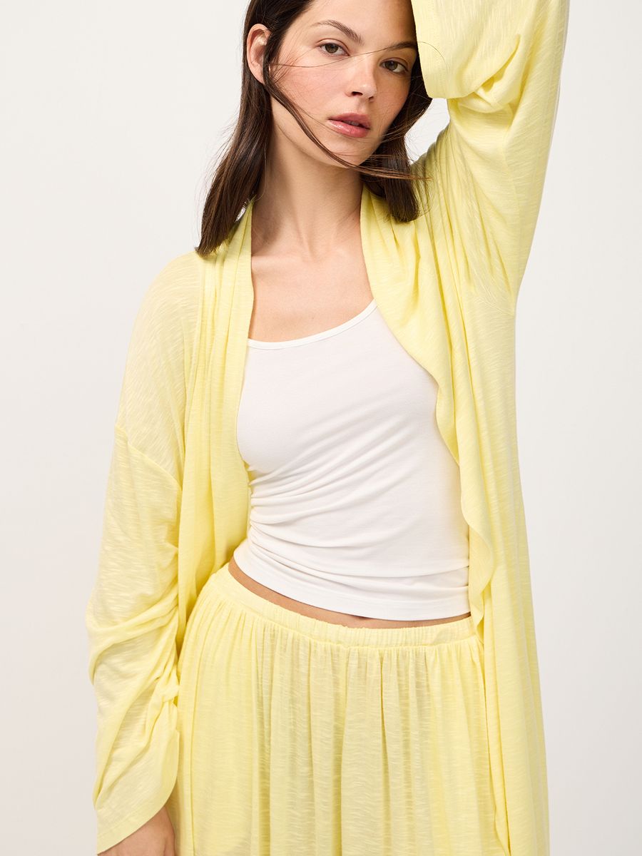 Щадящая ручная стирка в холодной воде при t не выше 20°С. Нельзя отбеливать. Нельзя выжимать и сушить в стиральной машине. Сушить в расправленном виде на ровной горизонтальной поверхности. Гладить при t до 90°С с изнаночной стороны. Хранить изделия в сложенном виде в горизонтальном положении. Изделие имеет свойство незначительно вытягиваться в процессе носки. После стирки модель возвращается в свой первоначальный вид.