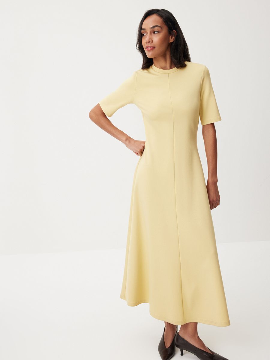 Наше вневременное платье-миди из плотного джерси — сдержанная классика, которая остается актуальной в любом сезоне. В новой коллекции мы представили модель в оттенке Whipped Butter — освежающем, нежном и вдохновляющем. Лаконичный крой, универсальность, баланс строгости и расслабленности делают изделие незаменимой частью гардероба. Это платье точно задержится в нем надолго.