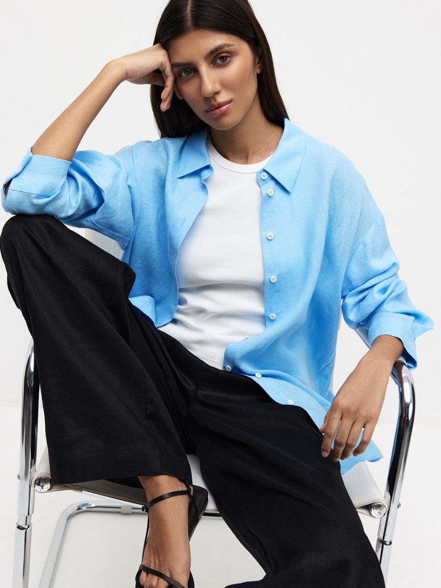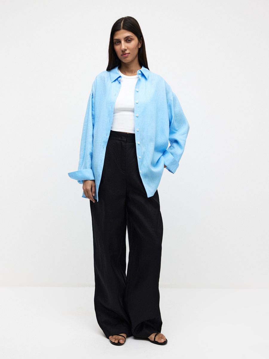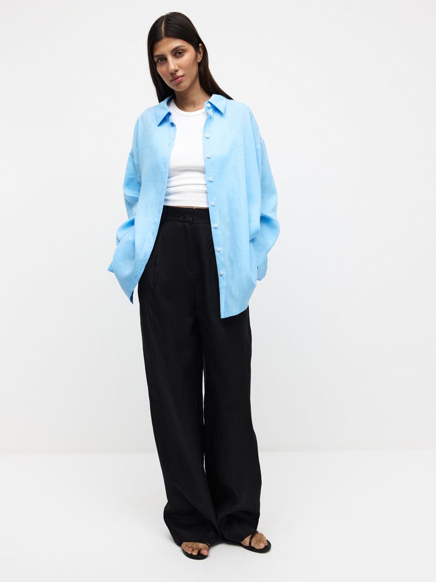 Бескомпромиссная модель идеальных брюк-palazzo. Наша carry over модель в новом сезоне выполнена из легкого и приятного льна, который создает комфорт и добавляет образу налета расслабленности. Сочетаем со всем гардеробом и экспериментируем с текстурами.