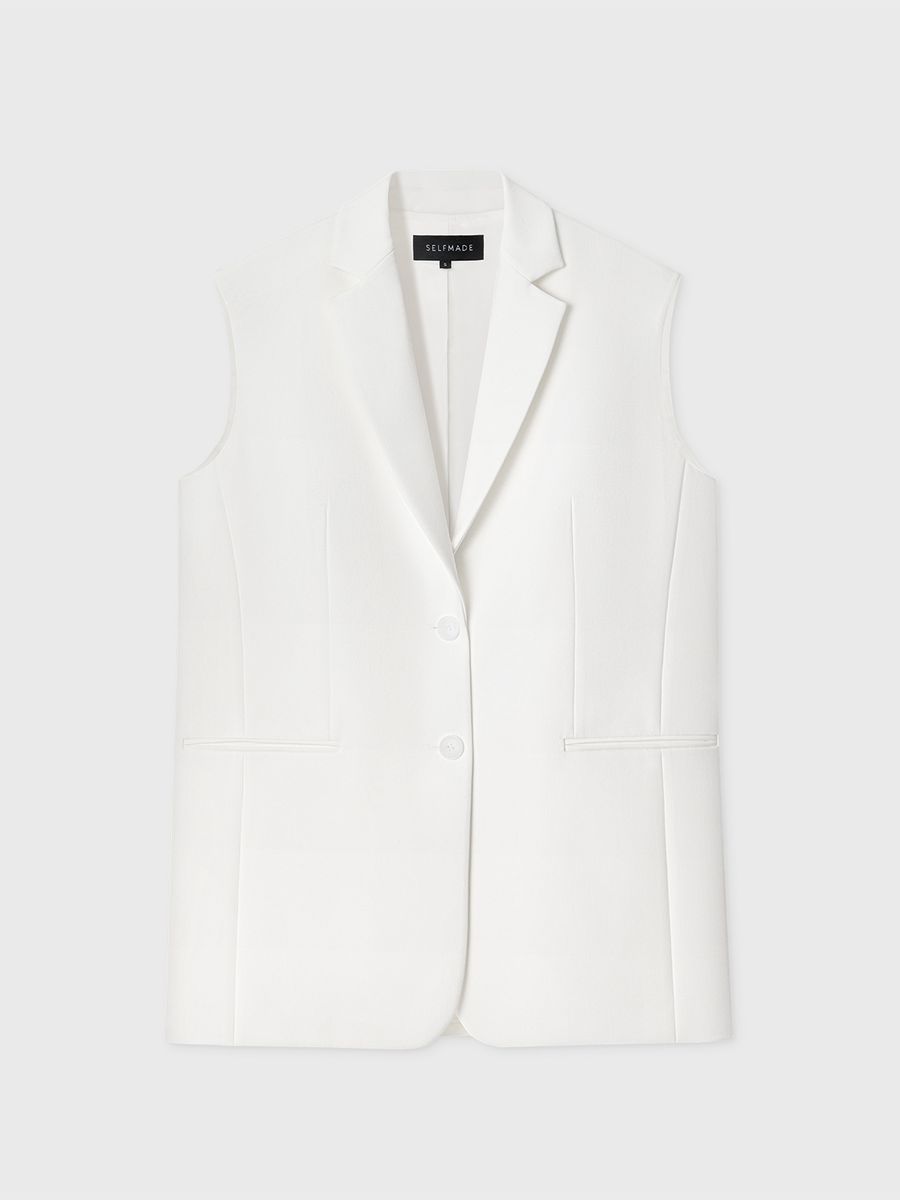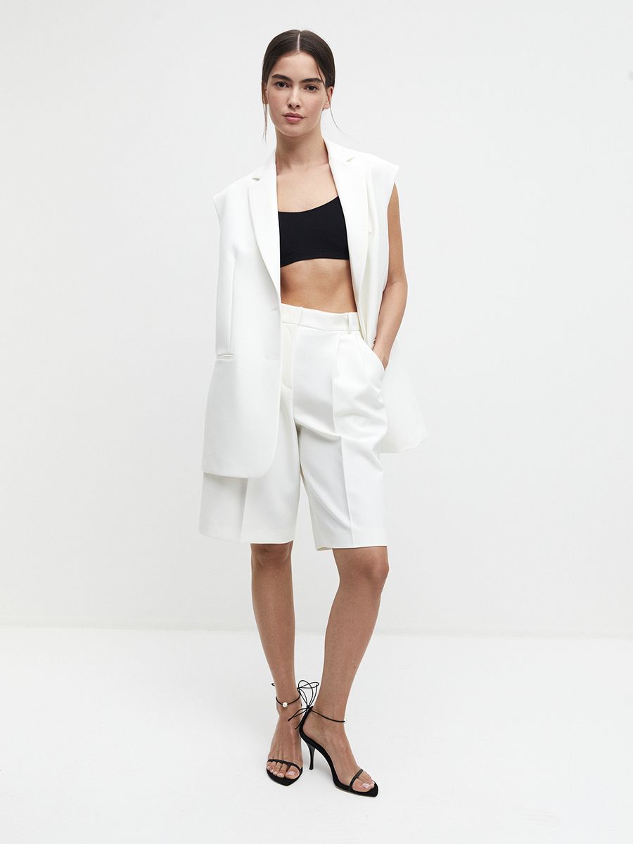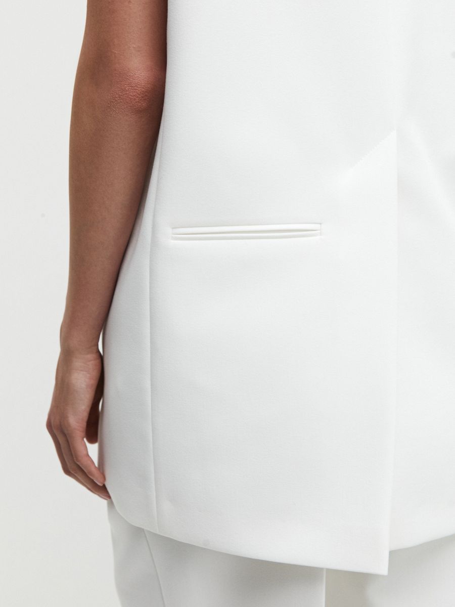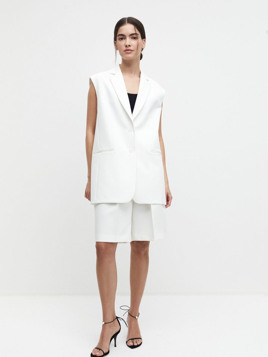 Удлиненный жилет work-life blend — о том, как легко переключаться с рабочих будней на теплые вечеринки под открытым небом, даже если этого не было в ваших планах. Прямой силуэт и лаконичное исполнение придают строгости, а мягкий молочный оттенок освежает образ и позволяет стилизовать жилет в зависимости от случая. Настоящее statement-изделие, которое подчеркивает уверенность и хрупкость своей обладательницы.
