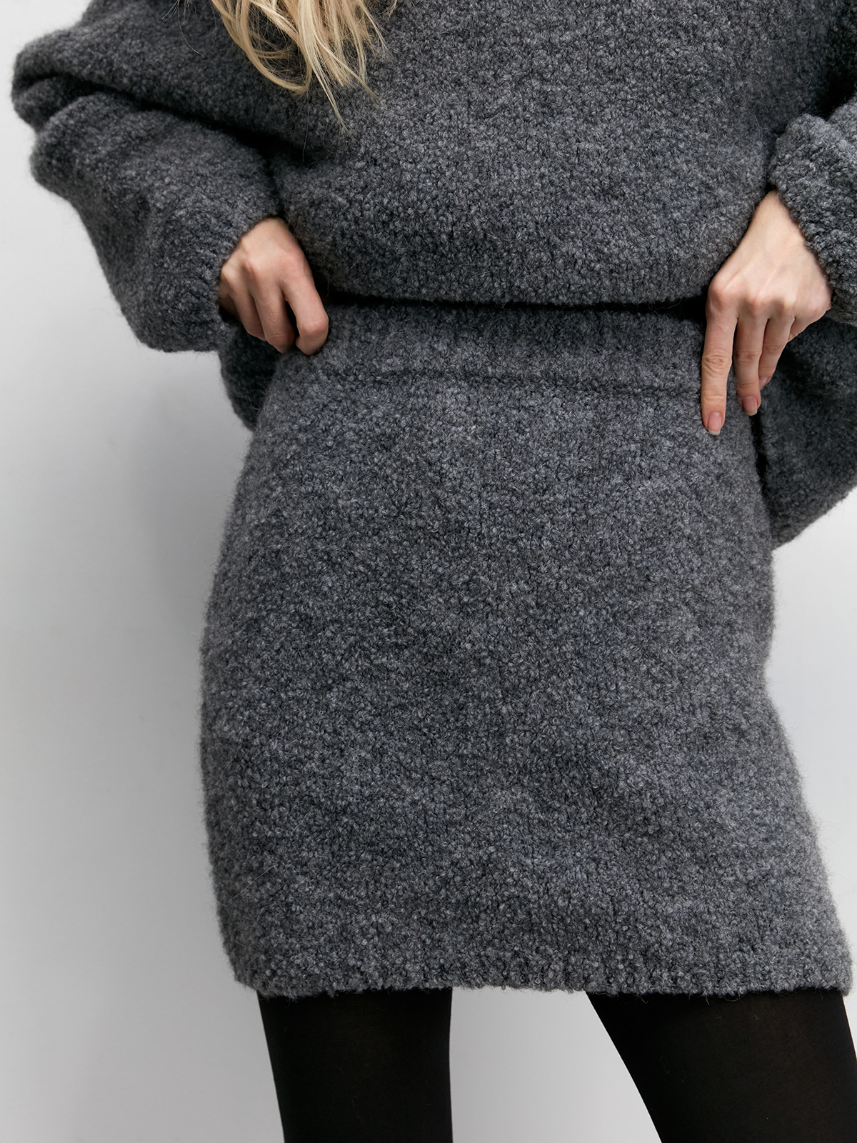 Теплая мини-юбка из итальянской пряжи букле для фактурных образов. Состав, который согреет и позволит подчеркнуть ваши бесконечные ноги в холодный сезон. Та самая модель, которая не терпит компромиссов. Носим соло или в сочетании с идеальным джемпером.