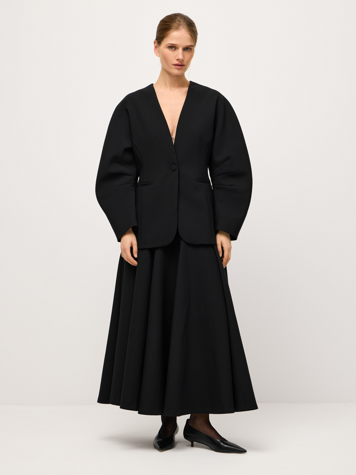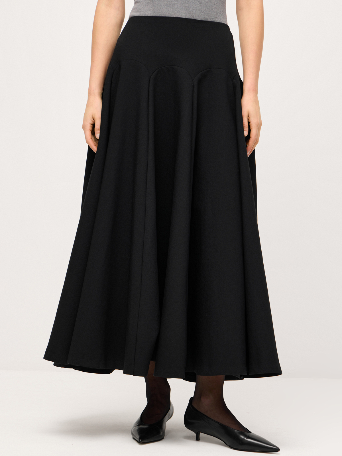 Архитектурная юбка dynamic weekdays — минималистичный айтем с ноткой нарядности. Уникальный крой модели создает множество изящных волн, эффектно «оживающих» в движении. Костюмная ткань отлично держит форму и придает изделию собранности. Модель идеально подходит для динамичных дней в мегаполисе, когда локации сменяются одна за другой и везде хочется выглядеть безупречно. Носим юбку с совершенной базой: топом-водолазкой, облегающей футболкой или комфортным лонгсливом.