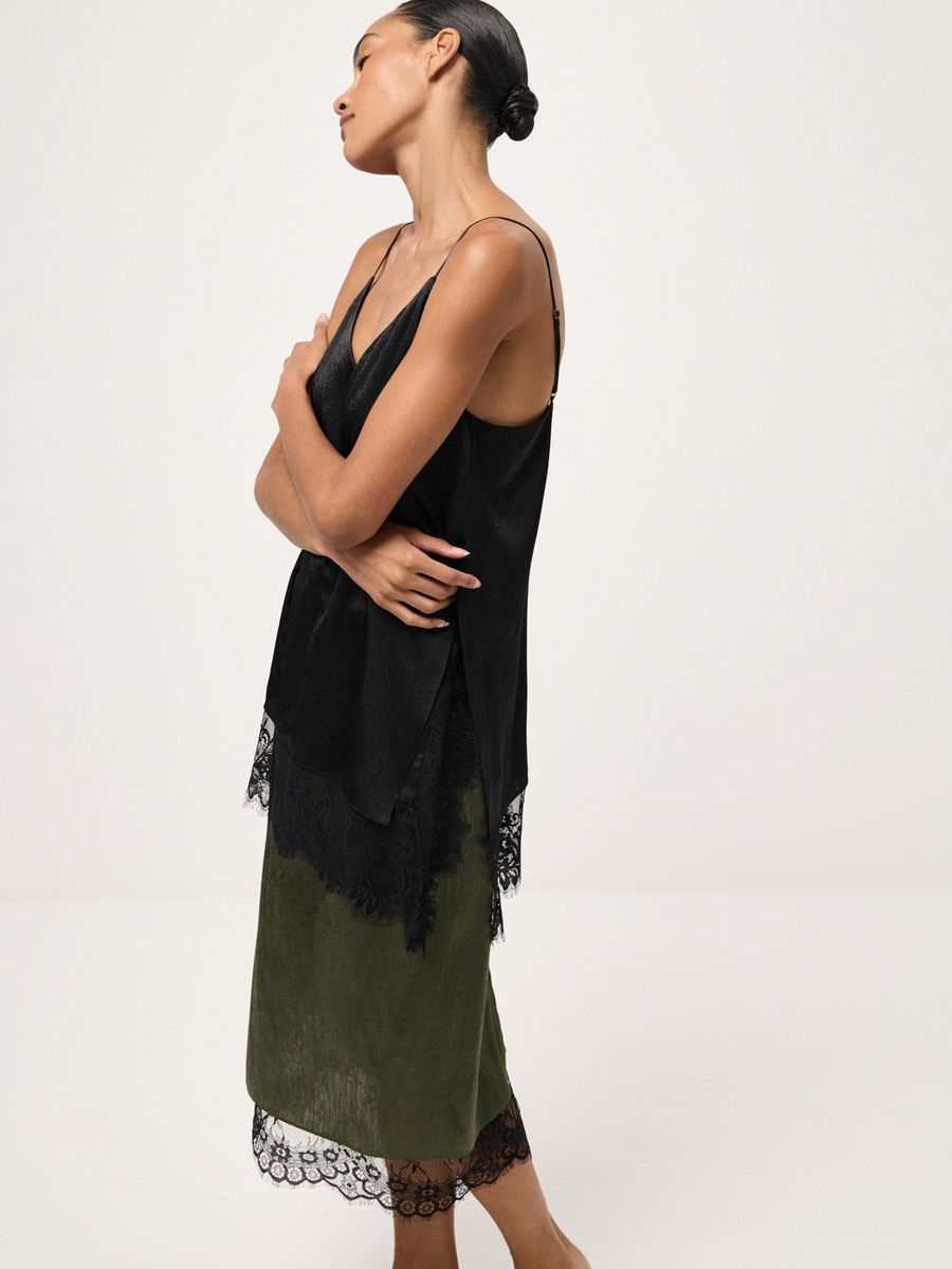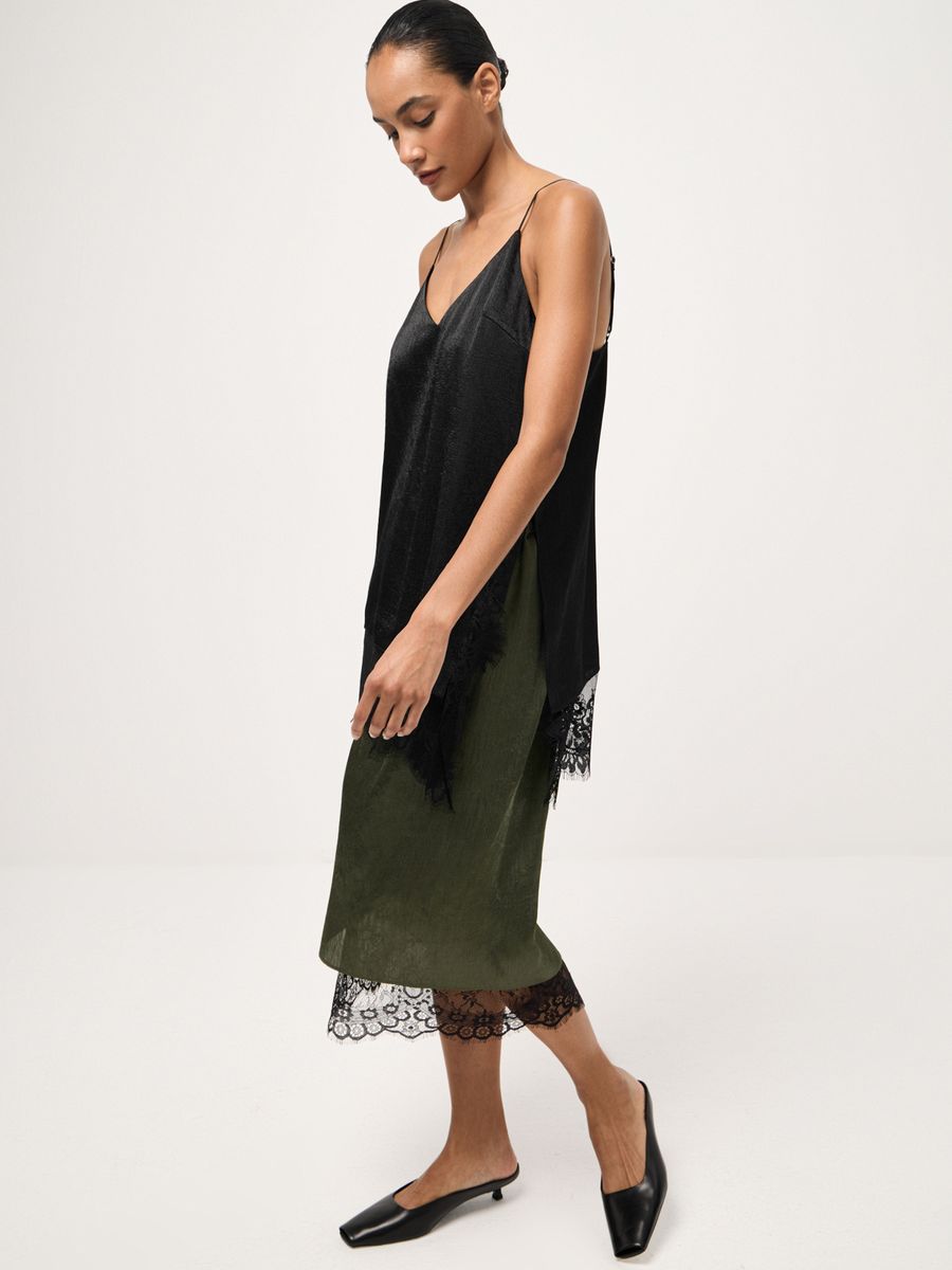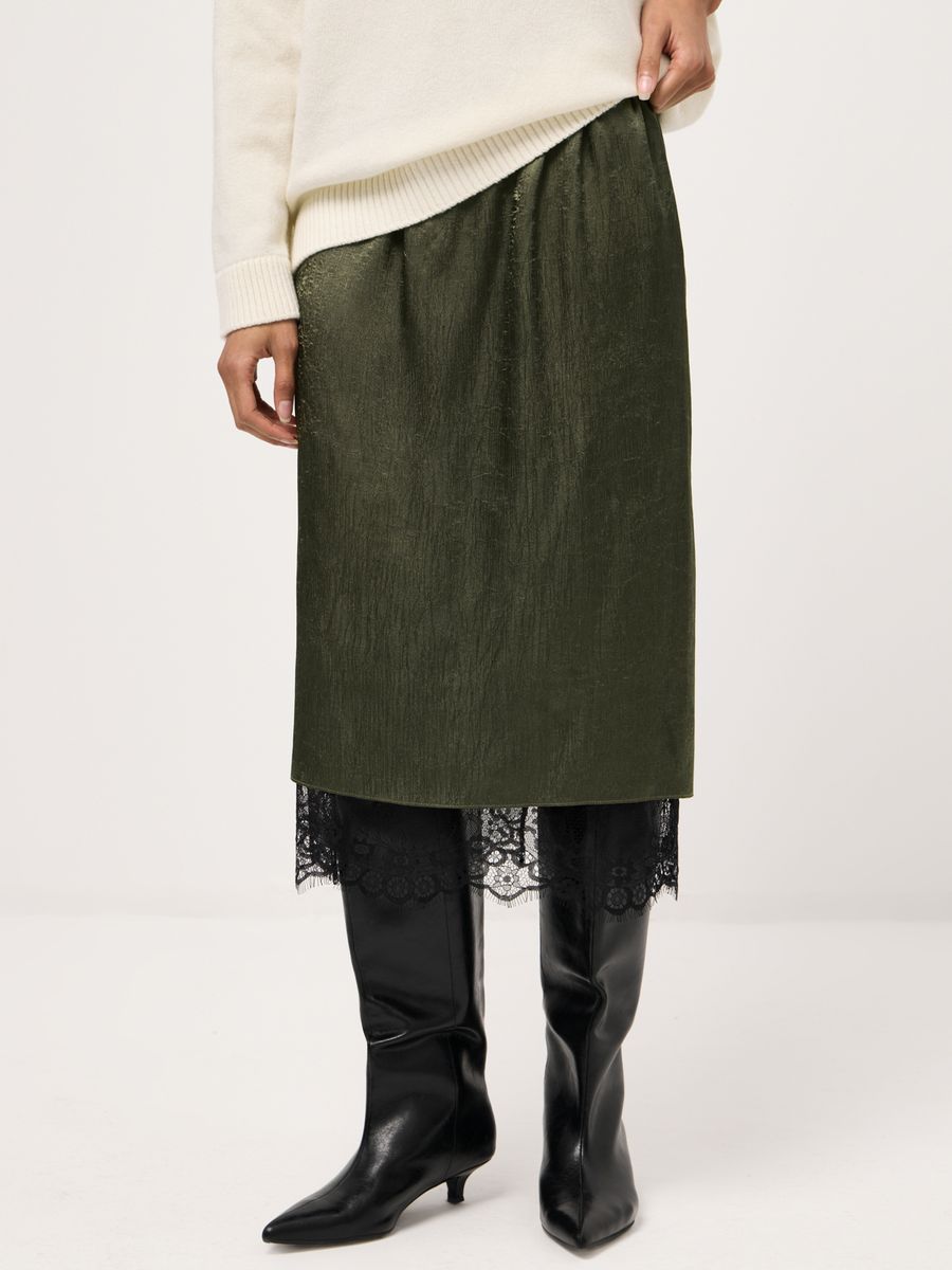 Совершенный минимализм и изящество в каждой детали — юбка в бельевом стиле Lovely Lace. Ткань с роскошной фактурой, утонченный силуэт и деликатное кружево делают модель идеальным выбором для женственных стилизаций. Изделие прямого кроя с аккуратной резинкой на талии станет незаменимой основой для торжественных аутфитов и добавит изысканности повседневным образам. Сочетаем утонченный айтем с уютным джемпером Merino Essential и дополняем модный контраст фактур высокими сапогами из кожи.