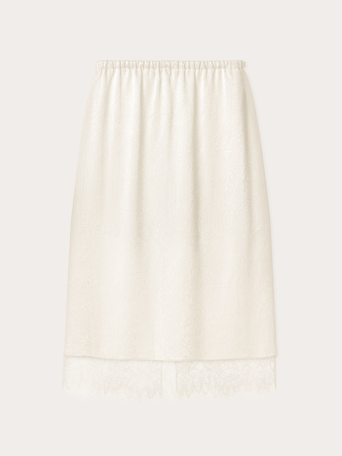 Совершенный минимализм и изящество в каждой детали — юбка в бельевом стиле lovely lace. Ткань с роскошной фактурой, утонченный силуэт и деликатное кружево делают модель идеальным выбором для женственных стилизаций. Изделие прямого кроя с аккуратной резинкой на талии станет незаменимой основой для торжественных аутфитов и добавит изысканности повседневным образам. Для бескомпромиссного контраста цветов, стилизуем юбку с кардиганом wool mix в красном оттенке.