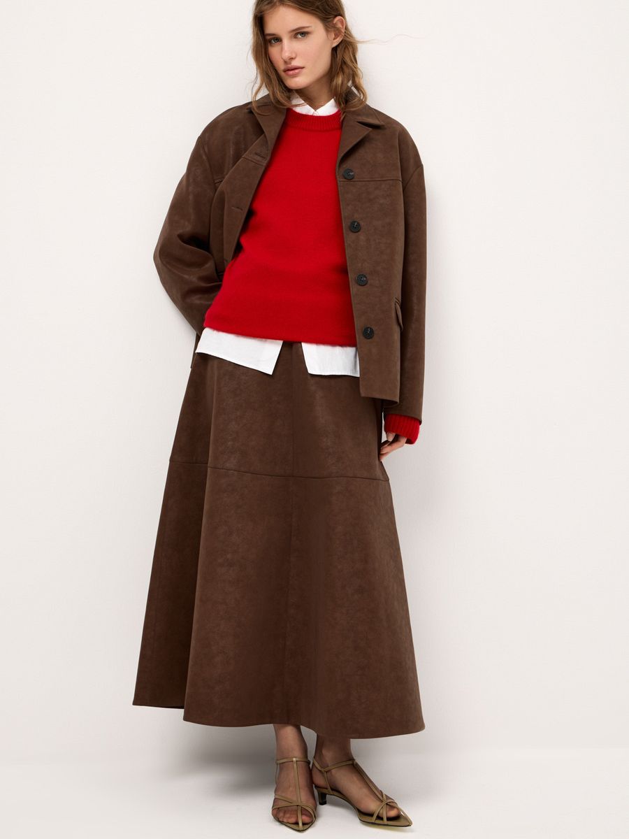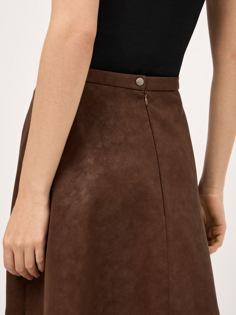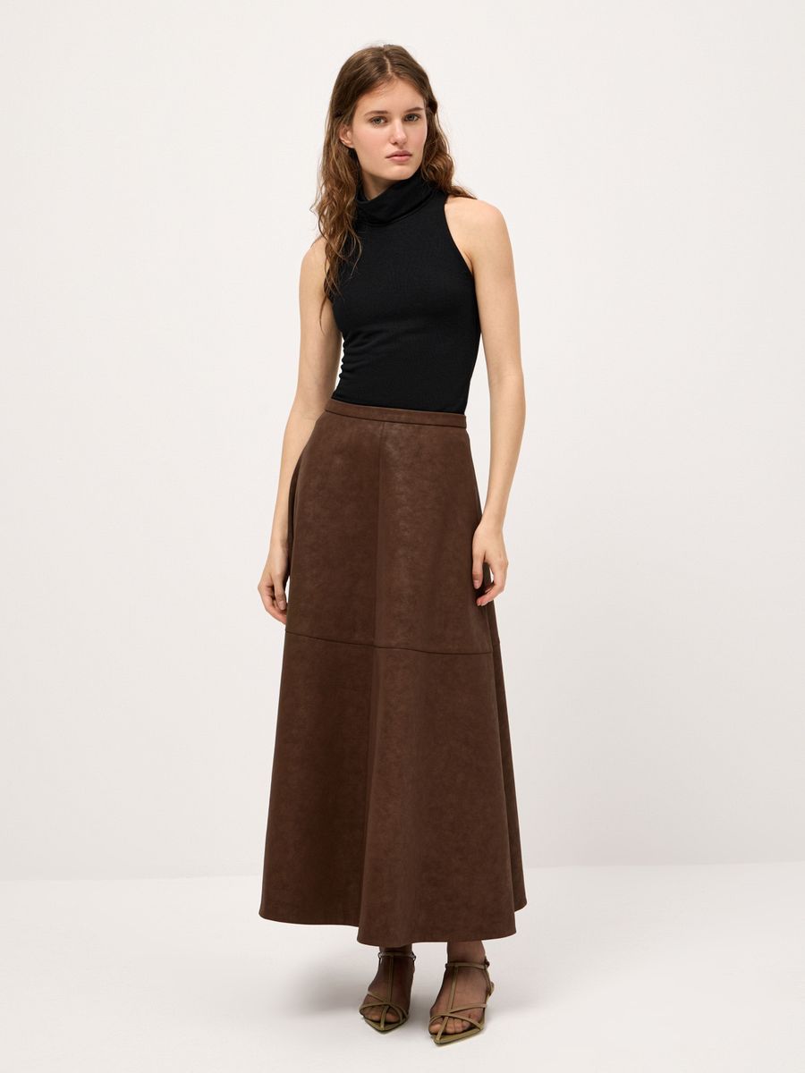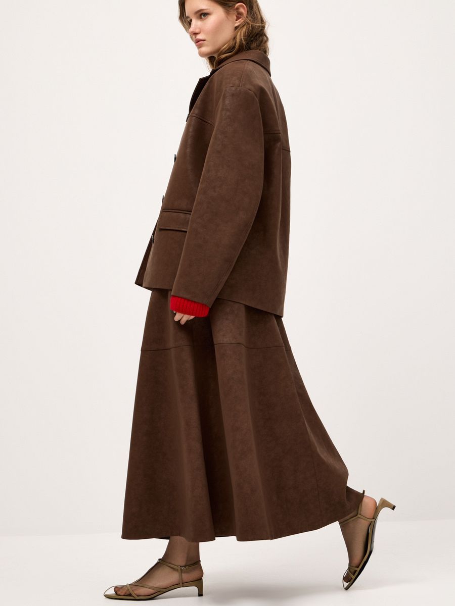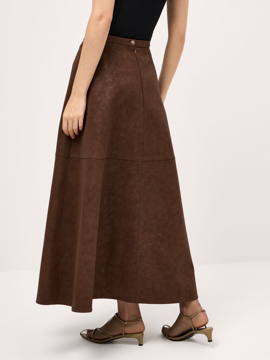 Юбка-миди с матовым финишем — вещь, которая с легкостью станет выразительным элементом образа для осеннего сезона. Лаконичный крой создает графичные линии силуэта, а благородная матовая фактура добавляет любой стилизации изысканной строгости. Вдохновленная эстетикой гардеробов конца 80-х, эта юбка легко станет ключевой деталью вашего образа, в котором элегантность сочетается с уверенной женственностью. Идеальна для тех дней, когда нужно выглядеть безупречно с утра до позднего вечера.