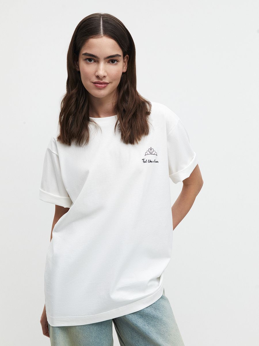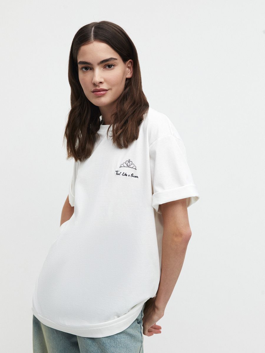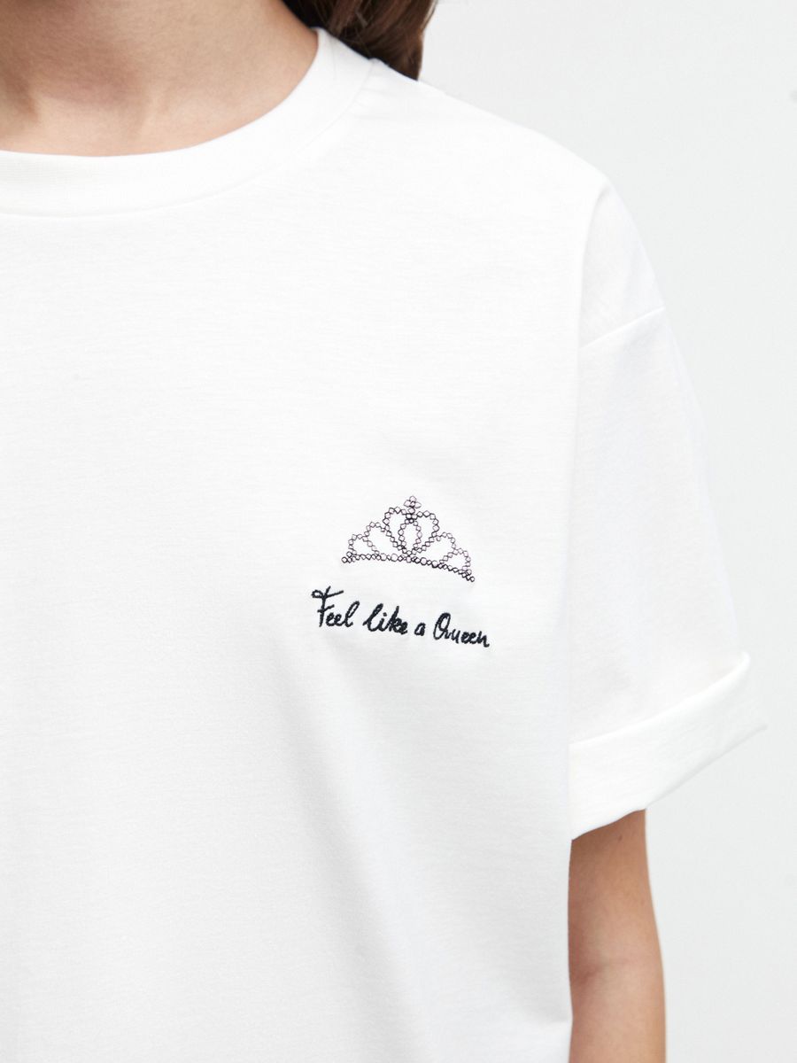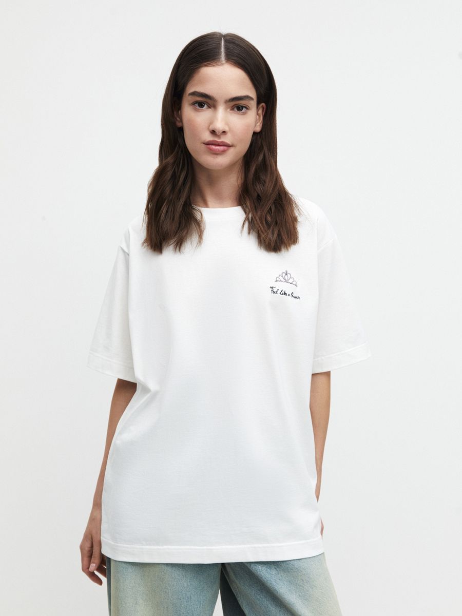 Футболка, в которой расслабленность и игривость весеннего настроения соединились воедино. Лаконичный дизайн с изящной вышивкой придаст образу легкости, а мягкая ткань обеспечит комфорт. Это именно та вещь, в которой можно неспешно гулять по оживленным паркам, наслаждаться выходными или энергично воплощать назначенные планы после долгой зимы.