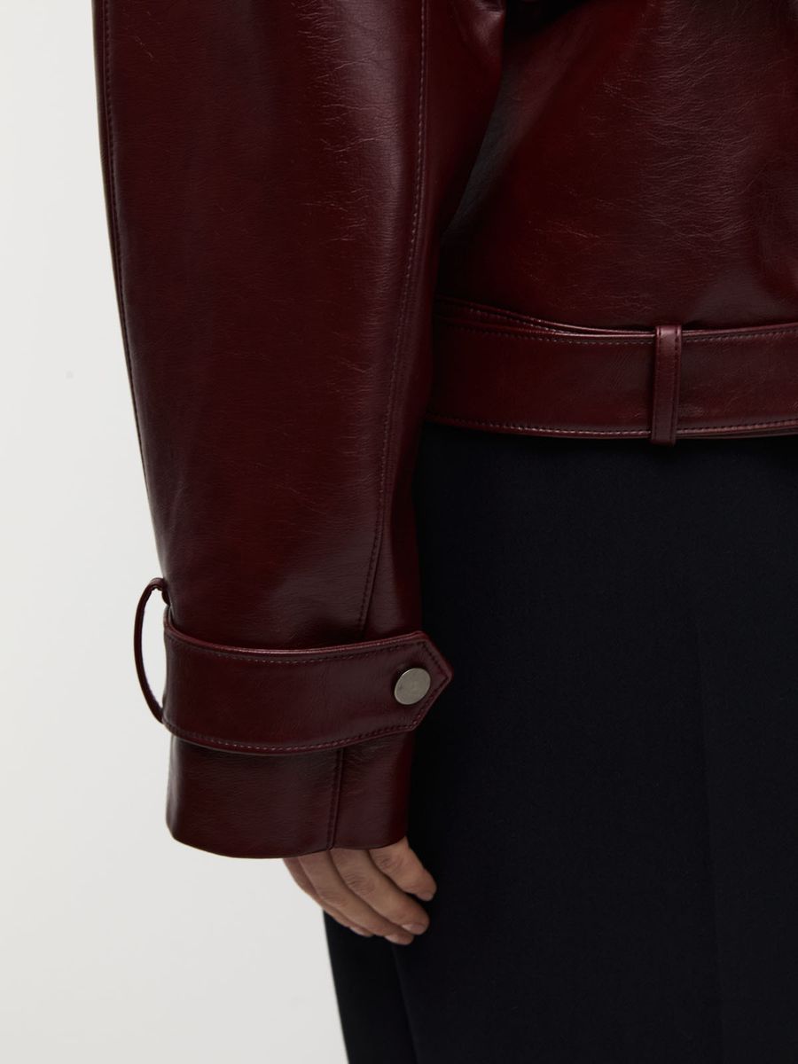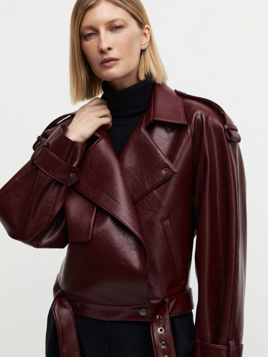 Куртка-косуха The 80s era — дух эпохи, когда стиль был манифестом, а уверенность ощущалась в каждом движении. Глянцевый блеск эко-кожи и глубокий оттенок burgundy переносят в годы дерзкой моды и шика, где каждая деталь говорила о свободе и самовыражении.