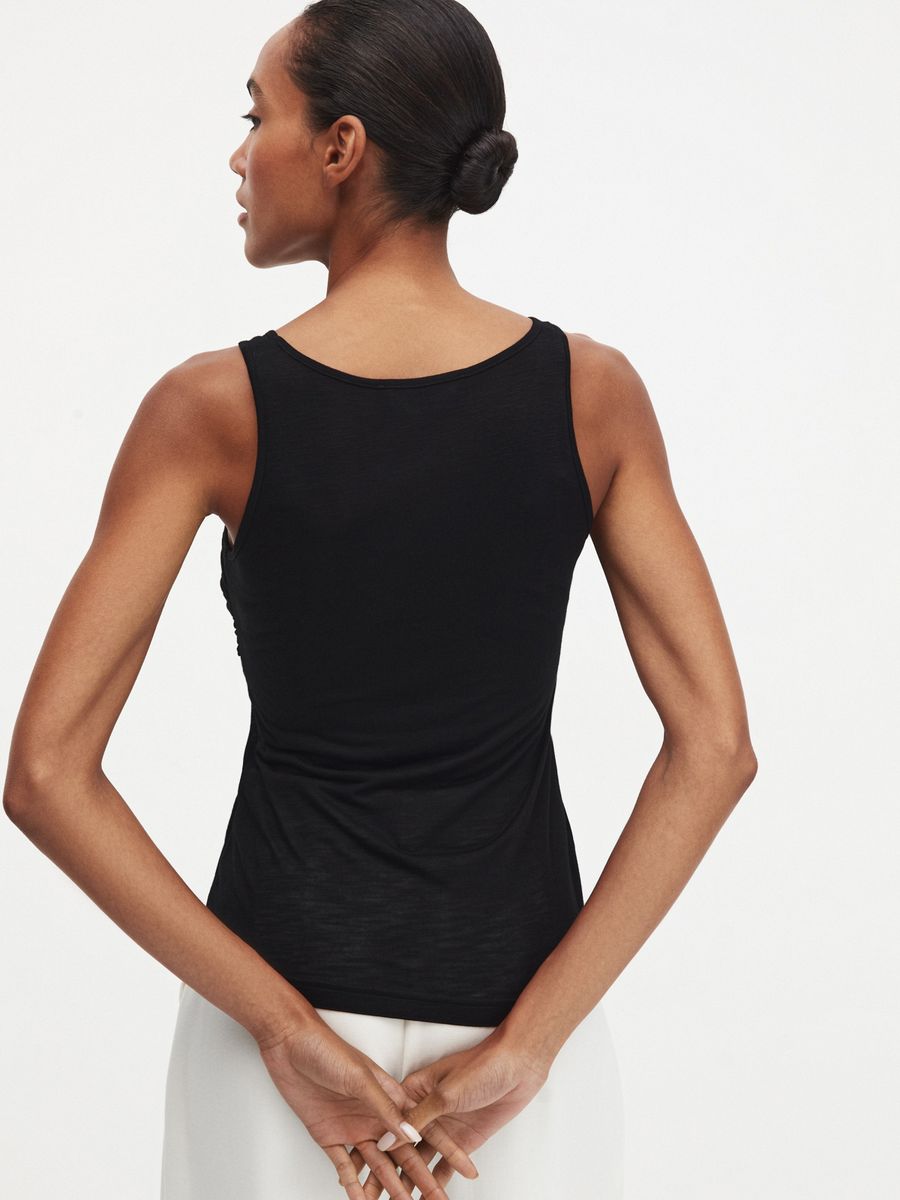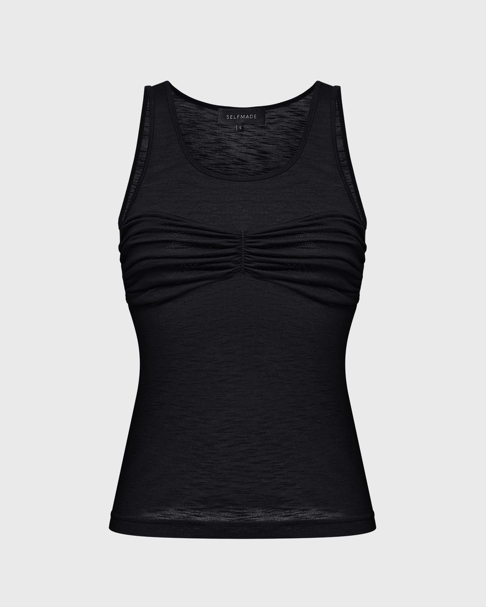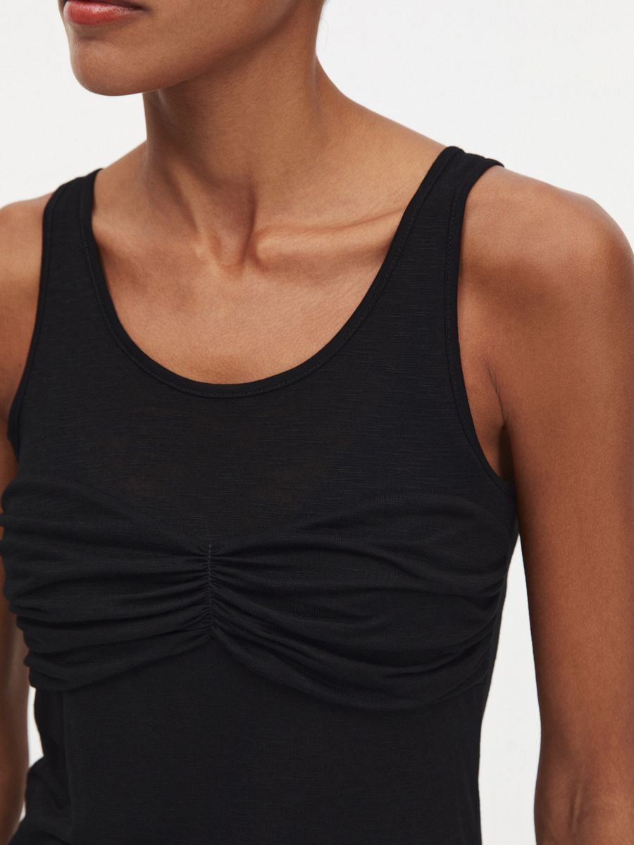 Драпировка на груди создаст эффектный акцент, придавая образу налет дерзости и выразительности, а облегающий и нежный материал подчеркнет ваш утонченный силуэт. Модель идеально подходит для создания многослойных аутфитов, не жертвуя при этом каплей сексуальности в повседневности