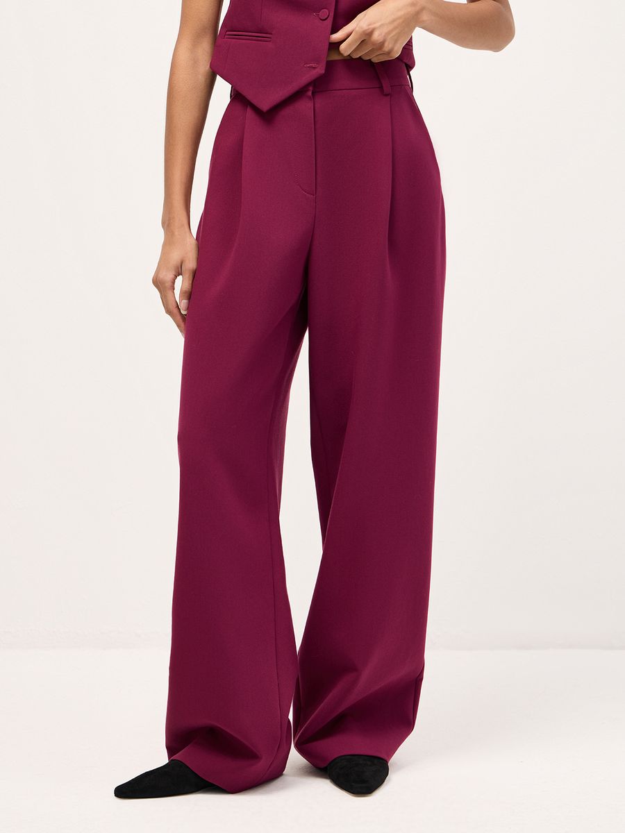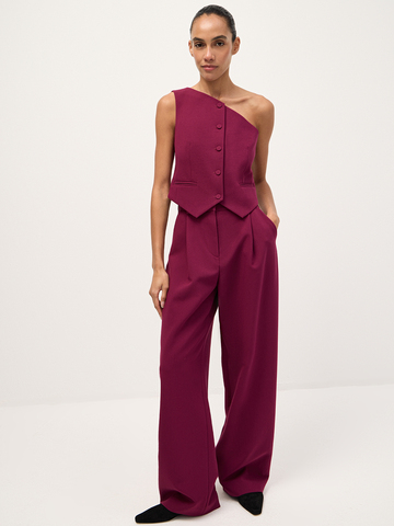 Безукоризненные брюки-палаццо Royal Violet — вневременная модель в свежем прочтении. Лаконичный крой с высокой талией и защипами создает элегантный женственный силуэт, а структурная ткань в изысканном фиолетовом цвете добавляет любым образам глубины и выразительности. Подчеркиваем благородный шарм модели через стилизации с уютным трикотажем и рубашками в спокойных оттенках или выбираем эффектный сет с изящным жилетом и жакетом в тон.