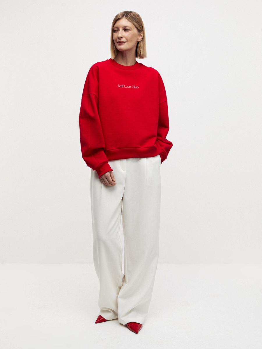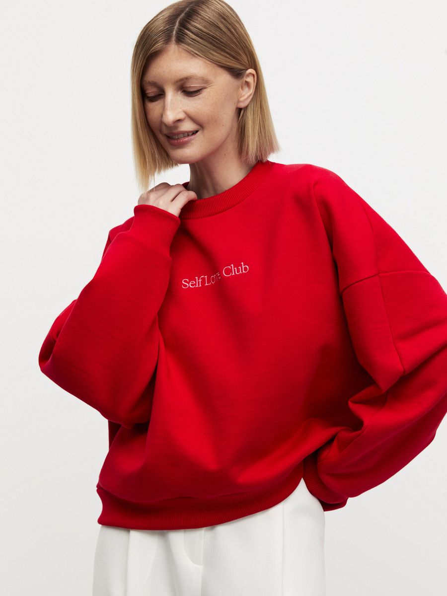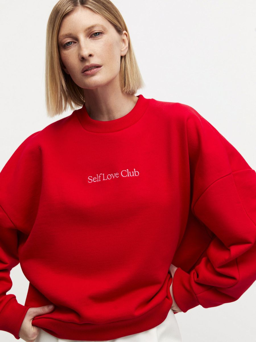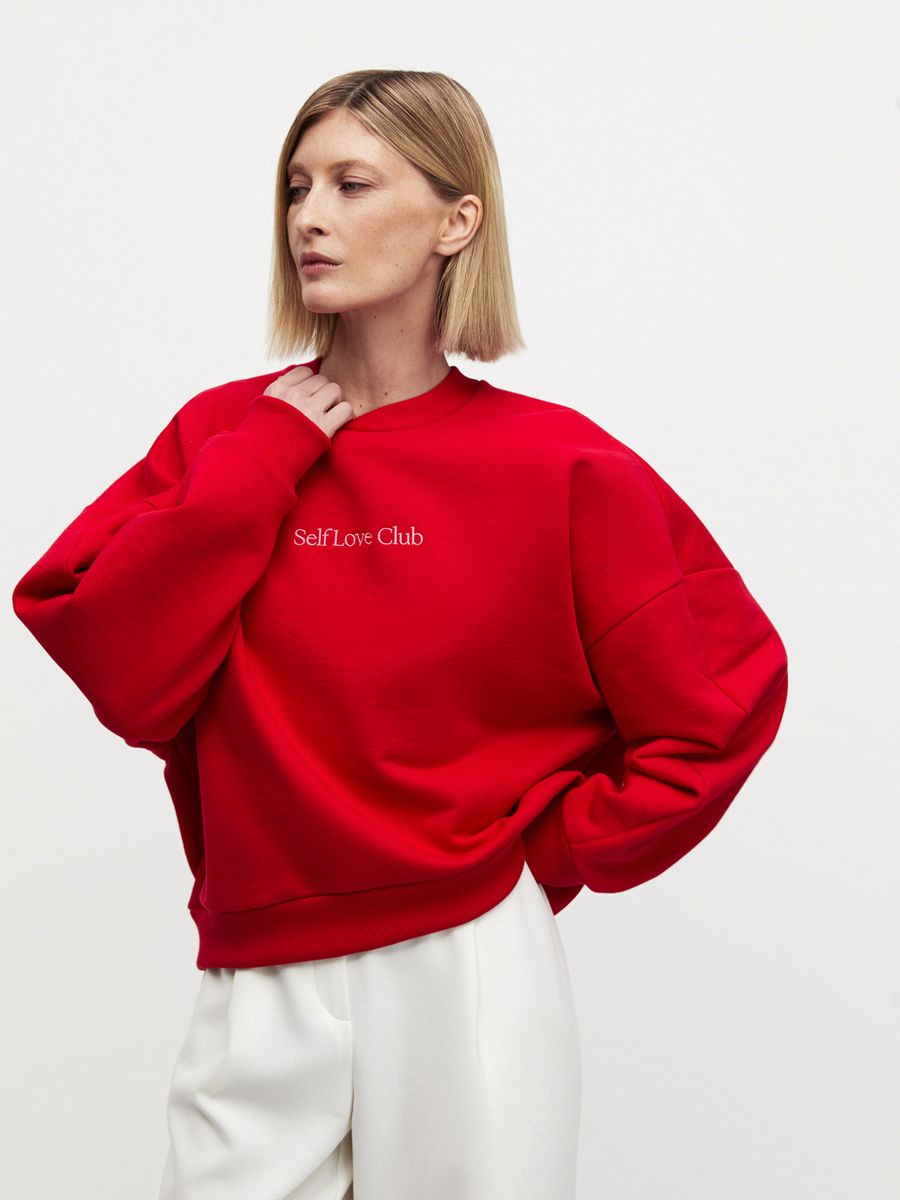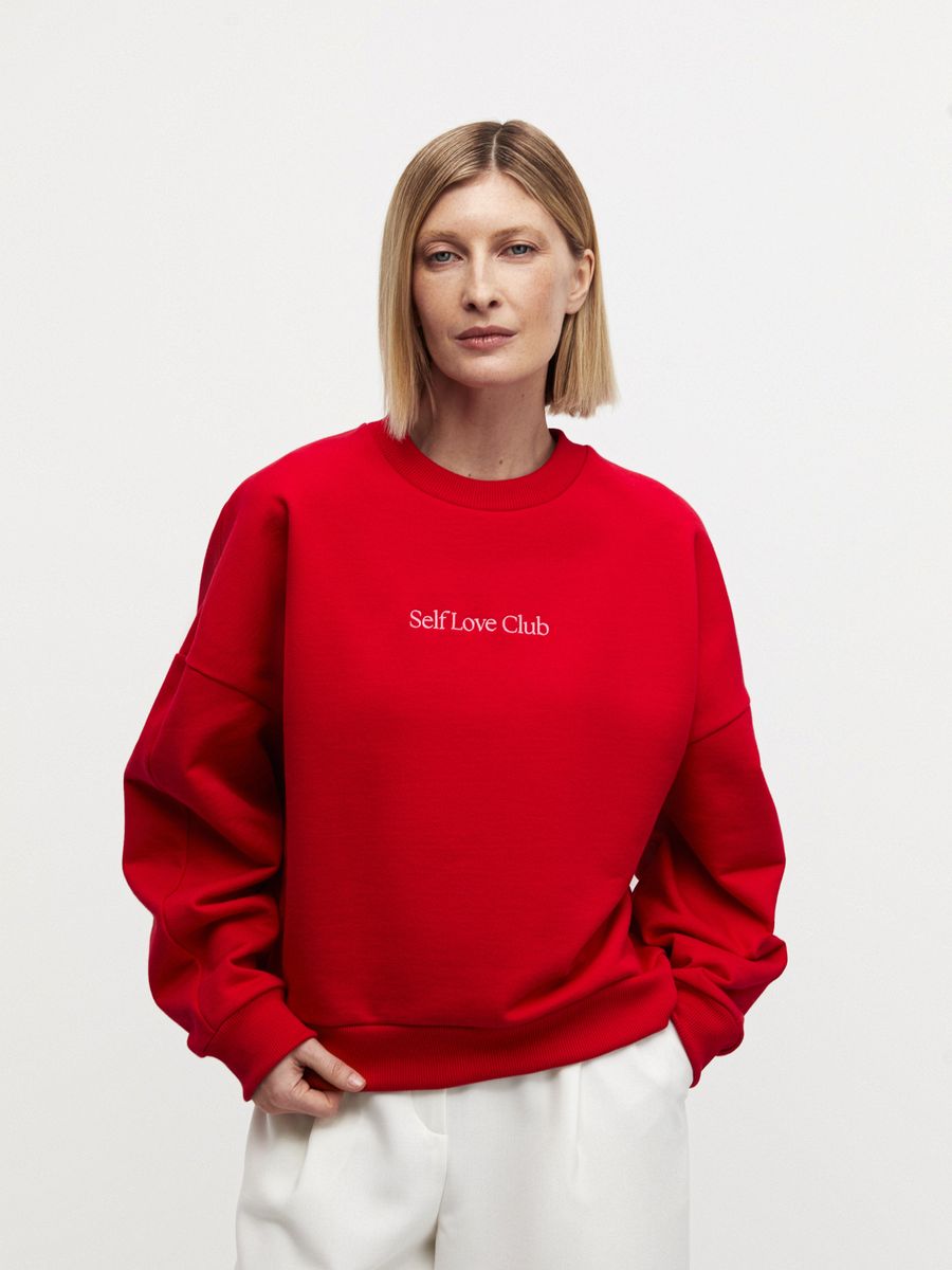 Свитшот из плотного футера Self Love Club — знаковая модель, олицетворяющая бренд. Контрастная вышивка с надписью Self Love Club и маленькое сердечко на спинке — это не просто детали, а символы большого и вдохновляющего комьюнити. Глубокий красный оттенок и комфортный крой подчеркивают расслабленность и выразительность этой модели. Этот свитшот не только про удобство, но и про внутреннюю силу и заботу. Носите его, чтобы напоминать ежедневно самой себе и окружающим: любовь к себе — первое и важное правило, которое помогает ощущать себя уверенной и ценной.