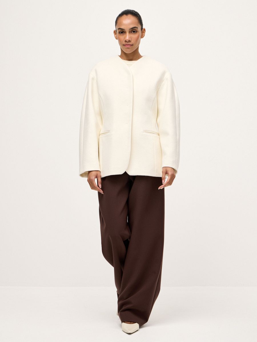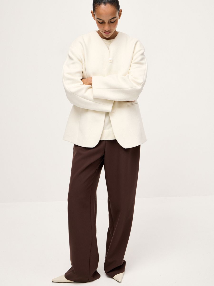 Силуэтное пальто-жакет — как утренний мягкий свет после затяжной зимы: спокойный, окутывающий и тёплый. Модель соединяет в себе строгость архитектурных линий, вдохновленных легендарной французской l'Orangerie в Париже, и легкость, которой хочется окружать себя в предвкушении теплого сезона.